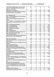 Drucksache 14/194 (14/113) Landtag des Saarlandes - 14. Wahlperiode - Internationales Begegnungs- und Forschungs- 12 1 0 1 0,0 zentrum für Informatik (IBFI) GmbH, Schloss Dagstuhl - Aufsichtsrat IZES gGmbH - Aufsichtsrat - 12 6 2 4 33,3 Jahrestagung der Futtermittelüberwachungsbe- 70 1 0 1 0,0 hörden der Länder und des Bundes Jury Integrationspreis 9 4 2 2 50,0 KMK - AG der Beauftragten für das Sokratespro- 16 1 0 1 0,0 gramm in den Ländern KMK - AG der Fremdsprachenreferenten der 16 1 0 1 0,0 Länder KMK - AG des dt. - frz. Entwicklungs- und Koope- 10 1 0 1 0,0 rationsprogramms Bilinguale Züge in Deutsch- land KMK - AG Gymnasiale Oberstufe 16 1 0 1 0,0 KMK - Amtschefkonferenz 30 1 0 1 0,0 KMK - Ausschuss für Kultur 16 1 1 0 100,0 KMK - Kommission für Statistik 16 2 0 2 0,0 KMK - Plenum 30 1 0 1 0,0 KMK - Schulausschuss 16 1 0 1 0,0 KMK - Unterausschuss Hochschulmedizin des 17 1 0 1 0,0 Hochschulausschusses der KMK KMK- Kommission Sport 16 1 0 1 0,0 KMK-AG Gleichzeitiger Erwerb der Allgemeinen 23 1 0 1 0,0 Hochschulreife und des Baccalauréat KMK-AG Lehrerbildung 16 1 0 1 0,0 KMK-Amtschefkommission "Qualitätssicherung in 17 1 0 1 0,0 Hochschulen" KMK-Amtschefkommission "Qualitätssicherung in 18 1 0 1 0,0 Schulen" KMK-Hochschulausschuss 17 1 0 1 0,0 KMK-UnterAG Lehrerbildung 16 2 0 2 0,0 KMK-Unterausschuss für Berufliche Bildung 16 1 1 0 100,0 Kommission für europäische und intern. Angele- 36 1 0 1 0,0 genheiten Kommission für saarländische Landesgeschichte 20 1 0 1 0,0 und Volksforschung Kommission zum Schutz gegen Fluglärm 19 1 1 0 100,0 Kommission zur Deregulierung des staatlichen 16 7 0 7 0,0 Sektors Konferenz der Gleichstellungs- und Frauenminis- 16 1 1 0 100,0 terinnen, -minister, -senatorinnen und -senatoren der Länder (GFMK) Konferenz der Integrationsbeauftragten der Län- 17 2 1 1 50,0 der Konferenz der Kirchenreferenten 17 1 0 1 0,0 Konferenz des Beauftragten der Bundesregie- 17 1 0 1 0,0 rung für Aussiedlerfragen und nationale Minder- heiten (Aussiedlerbeauftragter der Bundesregie- rung) Konferenz für die UT-Berufe 17 1 1 0 100,0 Konjunkturrat für die öffentliche Hand 17 1 0 1 0,0 - 24 -