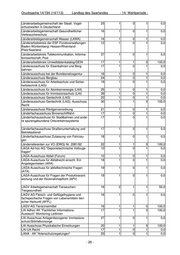 Drucksache 14/194 (14/113) Landtag des Saarlandes - 14. Wahlperiode - Länderarbeitsgemeinschaft der Staatl. Vogel- 25 1 0 1 0,0 schutzwarten in Deutschland Länderarbeitsgemeinschaft Gesundheitlicher 16 1 0 1 0,0 Verbraucherschutz Länderarbeitsgemeinschaft Wasser (LAWA) 16 1 0 1 0,0 Länderarbeitskreis der ESF-Fondsverwaltungen 12 1 0 1 0,0 Baden-Württemberg/ Hessen/Rheinland- Pfalz/Saarland Länderarbeitskreis Telekommunikation, Informa- 37 1 0 1 0,0 tionswirtschaft, Post Länderarbeitskreis Umweltdatenkatalog/GEIN 17 1 1 0 100,0 Länderausschuss für Eisenbahnen und Berg- 17 1 0 1 0,0 bahnen Länderausschuss bei der Bundesnetzagentur 16 1 0 1 0,0 Länderausschuss Bergbau 24 1 0 1 0,0 Länderausschuss für Arbeitsschutz und Sicher- 19 1 0 1 0,0 heitstechnik (LASi) Länderausschuss für Atomkernenergie (LAA) 25 1 0 1 0,0 Länderausschuss für Immissionsschutz (LAI) 39 1 0 1 0,0 Länderausschuss Gentechnik (LAG) 22 1 0 1 0,0 Länderausschuss Gentechnik (LAG), Ausschuss 30 1 1 0 100,0 Recht Länderausschuss Röntgenverordnung 21 1 0 1 0,0 Länderfachausschuss Binnenschifffahrt 17 1 0 1 0,0 Länderfachausschuss für Stadtbahnen und ande- 17 1 0 1 0,0 re spurengebundene Ortsverkehrssysteme Länderfachausschuss Straßenunterhaltung und 17 1 0 1 0,0 Betriebsdienst Länderfachausschuss Zulassung von Fahrzeu- 18 1 0 1 0,0 gen Länderreferenten zur VO (EWG) Nr. 2081/92 22 1 1 0 100,0 LAGA Ad-hoc-AG "Deponietechnische Vollzugs- 10 1 0 1 0,0 fragen" LAGA-Ausschuss Abfall (Forum) 10 1 0 1 0,0 LAGA-Ausschuss für Abfallrecht einschl. EU- 18 1 0 1 0,0 Angelegenheiten (ARA) LAGA-Ausschuss für abfalltechnische Fragen 19 1 0 1 0,0 (ATA) LAGA-Ausschuss für Fragen der Produktverant- 18 1 0 1 0,0 wortung und der Rücknahmepflicht (APV) LAGV Arbeitsgemeinschaft Tierseuchen- 16 2 1 1 50,0 Tiergesundheit LAGV-AG Fleisch- und Geflügelhygiene und 16 1 0 1 0,0 fachspezifische Fragen von Lebensmitteln tieri- scher Herkunft (AFFL) LAGV-AG Tierarzneimittel 16 1 1 0 100,0 LAI Adhoc AK "Fachlicher Informations- 17 1 1 0 100,0 Austauch" Monitoring Leitlinien LAI-Ausschuss Anlagenbezogener Immissions- 27 1 0 1 0,0 schutz/Störfallvorsorge LAI-Ausschuss Physikalische Einwirkungen 20 1 1 0 100,0 LAI-UA Recht 17 1 0 1 0,0 LANA - AK "Artenschutzregelungen" 20 1 0 1 0,0 - 26 -