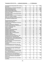 Drucksache 14/194 (14/113) Landtag des Saarlandes - 14. Wahlperiode - Prüfungsausschuss für die berufliche Fortbildung 12 1 0 1 0,0 zum anerkannten Abschluss "Geprüfte Fachkraft zur Arbeits- und Berufsförderung in Werkstätten für behinderte Menschen" Prüfungsausschuss für die Eignungsprüfung für 5 5 2 3 40,0 den mittleren allgemeinen Vollzugsdienst Prüfungsausschuss für die Laufbahn des geho- 5 5 0 5 0,0 benen kartographischen Verwaltungsdienst Prüfungsausschuss für die Laufbahn des geho- 5 2 0 2 0,0 benen vermessungstechnischen Verwaltungs- dienstes der Vermessungs- und Katasterverwal- tung Prüfungsausschuss für die Laufbahnprüfung der 9 3 1 2 33,3 Gerichtsvollzieher/innen Prüfungsausschuss für die Laufbahnprüfung für 9 3 2 1 66,7 den mittleren Justizdienst Prüfungsausschuss für die Laufbahnprüfung für 3 3 1 2 33,3 den mittleren Verwaltungsdienst an Justizvoll- zugsanstalten Prüfungsausschuss für die verwaltungseigene 2 2 0 2 0,0 Prüfung d. Messgehilfen Prüfungsausschuss für Fahrlehrer beim MUEV 6 1 0 1 0,0 Prüfungsausschuss für Lebensmittelchemiker 2 2 0 2 0,0 Prüfungsausschuss für Steuerberater 17 3 1 2 33,3 Prüfungsausschuss für Wirtschaftsprüfer und 154 1 0 1 0,0 Vereidigte Buchprüfer der Länder Hessen, Rhein- land-Pfalz, Saarland und Thüringen Prüfungsausschuss Vermessungstechniker 3 2 0 2 0,0 Fachbereich Vermessungs- und Katasterwesen Prüfungskommission für Wirtschaftsprüfer 10 1 0 1 0,0 Qualitätsbeirat Qualitätszeichen "Gesicherte 17 1 0 1 0,0 Qualität mit Herkunftsangabe" Qualitätsbeirat Schule Saar 9 4 0 4 0,0 Red Point GmbH - Gesellschaft für Marketing 5 2 0 2 0,0 und Vertrieb GmbH - Aufsichtsrat - Referentenbesprechung der zuständigen Stellen 16 1 1 0 100,0 der Länder für die Berufsbildung in der Hauswirt- schaft Referentensitzung "Nachwachsende Rohstoffe" 17 1 0 1 0,0 Referentensitzung Absatzförderung 20 1 1 0 100,0 Referentensitzung Acker- und Pflanzenbau 16 1 1 0 100,0 Referentensitzung Agrarpolitik 17 1 1 0 100,0 Referentensitzung Benachteiligte Gebiete 18 1 0 1 0,0 Referentensitzung Berufsbildung 17 1 1 0 100,0 Referentensitzung Eier und Geflügel 18 1 0 1 0,0 Referentensitzung Ernährung/Schulverpflegung 17 1 1 0 100,0 Referentensitzung Ernährungsvorsorge 26 1 1 0 100,0 Referentensitzung Extensivierung 16 1 1 0 100,0 Referentensitzung Gartenbau (Erzeugung) 18 1 0 1 0,0 Referentensitzung Gartenbau (Markt) 20 1 1 0 100,0 Referentensitzung Getreide und Ölsaaten (Markt) 16 1 1 0 100,0 - 30 -