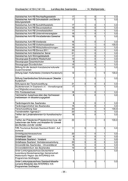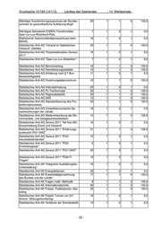 Drucksache 14/194 (14/113) Landtag des Saarlandes - 14. Wahlperiode - Ständiger Koordinierungsausschuss der Bundes- 20 1 1 0 100,0 zentrale für gesundheitliche Aufklärung BzgA Ständiges Sekretariat EURES-Transfrontalier 7 1 0 1 0,0 Saar-Lor-Lux-Rheinland-Pfalz Statistischer Sachverständigenausschuss beim 16 1 0 1 0,0 BMVEL Statistisches Amt-AG "Intranet im Statistischen 20 1 1 0 100,0 Verbund" (StaNet) Statistisches Amt-AG "Kostenkalkulation Zensus 16 1 0 1 0,0 2011" Statistisches Amt-AG "Saar-Lor-Lux-Statistiken" 7 1 0 1 0,0 Statistisches Amt-AG Benchmarking 16 1 1 0 100,0 Statistisches Amt-AG Dienstleistungsstatistik 15 1 1 0 100,0 Statistisches Amt-AG Erhebung nach § 7 Bun- 11 1 0 1 0,0 desstatistikgesetz Statistisches Amt-AG Forschungsdatenzentrum 16 1 1 0 100,0 Statistisches Amt-AG Interneterhebung 20 1 0 1 0,0 Statistisches Amt-AG PL-Fachkonzept 20 1 1 0 100,0 Statistisches Amt-AG Regionalstatistik 20 1 1 0 100,0 Statistisches Amt-AG SAS 12 1 1 0 100,0 Statistisches Amt-AG Standardisierung des Pro- 20 1 1 0 100,0 duktionsprozesses Statistisches Amt-AG Umweltökonomische Ge- 16 1 0 1 0,0 samtrechnungen der Länder Statistisches Amt-AG Weiterentwicklung der Bin- 10 1 1 0 100,0 nenhandels- und Gastgewerbestatistiken Statistisches Amt-AG Zensus 2011 "Ad Hoc-AG: 16 1 0 1 0,0 Ausschreibung Druck und Versand" Statistisches Amt-AG Zensus 2011 "Erfahrungs- 31 1 1 0 100,0 austausch PG7-GWZ" Statistisches Amt-AG Zensus 2011 "PG3- 15 1 0 1 0,0 Haushaltsstichprobe" Statistisches Amt-AG Zensus 2011 "PG5- 5 1 0 1 0,0 Erwerbsregister" Statistisches Amt-AG Zensus 2011 "PG7-GWZ" 30 1 0 1 0,0 Statistisches Amt-AG Zensus 2011 "PG9-IT- 16 1 0 1 0,0 Fragen" Statistisches Amt-AK "Integrierte Ausbildungsbe- 16 1 0 1 0,0 richterstattung" Statistisches Amt-AK Energiebilanzen 20 1 0 1 0,0 Statistisches Amt-AK Erwerbstätigenrechnung 17 1 1 0 100,0 des Bundes und der Länder Statistisches Amt-AK Fragen math. Methodik 8 1 1 0 100,0 Statistisches Amt-AK Informationstechnik 40 1 1 0 100,0 Statistisches Amt-AK Presse, Publikationen, Mar- 25 1 1 0 100,0 keting Statistisches Amt-AK Projekt "Lernen vor Ort" 16 1 0 1 0,0 (Komm. Bildungsmonitoring) Statistisches Amt-AK Verfahren der Schulstatistik 10 1 0 1 0,0 - 33 -