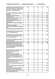 Drucksache 14/194 (14/113) Landtag des Saarlandes - 14. Wahlperiode - Arbeitskreis der Regionaldirektion Rhein- 42 2 0 2 0,0 land-Pfalz-Saarland, den Ländern Rhein- land-Pfalz und Saarland sowie den GF der ARGEn - Umsetzung SGB II Arbeitskreis Fachberater für Kinderta- 20 2 1 1 50,0 gesstätten Arbeitskreis Familienerholung 35 2 1 1 50,0 Arbeitskreis Hort 25 1 0 1 0,0 Arbeitskreis Lobby für Mädchen und 20 1 1 0 100,0 junge Frauen im Saarland Arbeitskreis Mädchen in stationären 15 1 1 0 100,0 Einrichtungen Arbeitskreis Saarländische Jugendpfle- 9 2 0 2 0,0 ger Arbeitskreis Tagespflege 10 1 0 1 0,0 Arbeitskreis Wirtschaftliche Erziehungs- 8 1 0 1 0,0 hilfe Arbeitsschutzausschuss des MAFPSuS 10 7 1 6 14,3 Arbeitstagungen der Bundeszentralstel- 50 2 1 1 50,0 len für Auslandsadoptionen Arbeitstagungen der zentralen Adopti- 32 2 1 1 50,0 onsstellen - Bundesarbeitsgemeinschaft der Landesjugendämter Ausschuss für Informations- und Kom- 10 1 0 1 0,0 munikationstechnik Bafög-Programmierverbund der Länder 32 2 2 0 100,0 Begleitausschuss des Saarlandes für 10 2 0 2 0,0 das EFRE-kofinanzierte Operationelle Programm Regionale Wettbewerbsfähig- keit und Beschäftigung in der Förderpe- riode 2007 bis 2013 Begleitausschuss des Saarlandes für 18 4 2 2 50,0 das Ziel-2-Programm der EU- Strukturfonds Begleitausschuss für das ESF- 22 6 2 4 33,3 kofinanzierte Operationelle Programm Regionale Wettbewerbsfähigkeit u. Be- schäftigung in der Förderperiode 2007- 2013 Begleitausschuss für den Plan zur Ent- 18 3 2 1 66,7 wicklung des ländlichen Raums im Saar- land 2007 bis 2013 - ELER Beirat für die Teilhabe behinderter Men- 48 2 0 2 0,0 schen Beirat zur Verwendung der Überschüsse 4 4 1 3 25,0 der Totomittel Beratender Ausschuss für behinderte 10 2 0 2 0,0 Menschen bei dem Integrationsamt Beschwerdeausschuss gem. § 310 LAG 3 2 1 1 50,0 beim Landesausgleichsamt - 40 -