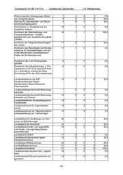 Drucksache 14/194 (14/113) Landtag des Saarlandes - 14. Wahlperiode - Bund-Länder-Koordinierungskreis Sexual- 24 1 1 0 100,0 aufklärung und Familienplanung der BZgA Bundesratsausschuss für Gesundheit 18 4 0 4 0,0 Bundesratsreferentenbesprechung 9 1 0 1 0,0 EFG 06 - Blut, Blutprodukte 25 1 1 0 100,0 EU-Arbeitsgruppe der AOLG EU-AG 17 1 1 0 100,0 Fachkommission Hochschulzugangsprü- 5 1 1 0 100,0 fung Gutachterausschuss Heilpraktiker 4 1 0 1 0,0 IMAGE (Interministerielle Arbeitsgruppe 10 1 0 1 0,0 Europa) Initiative Neue Qualität der Arbeit (INQA) - 20 2 2 0 100,0 Regionales Netzwerk Saar Interministerieller Ausschuss für Raumord- 8 1 0 1 0,0 nung (IMARO) Koordinierungsausschuss zur Förderung 5 1 1 0 100,0 der Zusammenarbeit zwischen den Unfall- versicherungsträgern und den staatlichen Arbeitsschutzbehörden im Saarland Länderarbeitsgemeinschaft Gesundheitli- 16 3 0 3 0,0 cher Verbraucherschutz LAGV Arbeitsgemeinschaft Tierseuchen- 16 2 1 1 50,0 Tiergesundheit LAGV-AG Fleisch- und Geflügelhygiene 16 2 1 1 50,0 und fachspezifische Fragen von Lebensmit- teln tierischer Herkunft (AFFL) LAGV-AG Tierarzneimittel 16 2 1 1 50,0 Landesarbeitsgemeinschaft zur Förderung 11 1 1 0 100,0 der Jugendzahnpflege im Saarland e.V. Landesausschuss für Jugendarbeitsschutz 19 3 3 0 100,0 Landesbeirat für die Belange von Men- 28 1 1 0 100,0 schen mit Behinderungen Landeswahlausschuss für die Wahlen zur 7 3 0 3 0,0 Sozialversicherung LAV-AG Lebensmittel und Bedarfsgegens- 16 1 0 1 0,0 tände, Wein und Kosmetika Meisterprüfungsausschuss für das Bestat- 18 1 0 1 0,0 tungsgewerbe Personalentwicklungs- und Koordinations- 8 1 0 1 0,0 stelle Personalkommission 10 1 1 0 100,0 Preisgericht Saarländischer Pflegepreis 12 2 1 1 50,0 Prüfungsausschuss Altenpflegeschule der 6 1 0 1 0,0 DAA Prüfungsausschuss f. Lebensmittelkontrol- 5 2 0 2 0,0 leure Prüfungsausschuss für den gehobenen und 5 1 1 0 100,0 mittleren Dienst bei der LVA für das Saar- land - 46 -