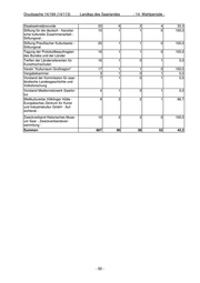 Drucksache 14/194 (14/113) Landtag des Saarlandes - 14. Wahlperiode - Staatssekretärsrunde 20 6 2 4 33,3 Stiftung für die deutsch - französi- 15 1 1 0 100,0 sche kulturelle Zusammenarbeit - Stiftungsrat - Stiftung Preußischer Kulturbesitz - 20 1 1 0 100,0 Stiftungsrat Tagung der Protokollbeauftragten 16 1 1 0 100,0 des Bundes und der Länder Treffen der Länderreferenten für 16 1 0 1 0,0 Kunsthochschulen Verein "Kulturraum Großregion" 17 1 1 0 100,0 Vergabekammer 3 1 0 1 0,0 Vorstand der Kommission für saar- 7 1 0 1 0,0 ländische Landesgeschichte und Volksforschung Vorstand Mediennetzwerk Saarlor- 4 1 0 1 0,0 lux Weltkulturerbe Völklinger Hütte - 9 3 2 1 66,7 Europäisches Zentrum für Kunst und Industriekultur GmbH - Auf- sichtsrat - Zweckverband Historisches Muse- 10 2 2 0 100,0 um Saar - Zweckverbandsver- sammlung - Summen 807 90 38 52 42,2 - 50 -
