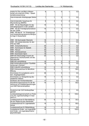 Drucksache 14/194 (14/113) Landtag des Saarlandes - 14. Wahlperiode - Institut für Film und Bild in Wissen- 9 1 0 1 0,0 schaft und Unterricht (FWU) - Gesell- schafterversammlung - Interministerielle Arbeitsgruppe Sekten 7 1 0 1 0,0 Interministerieller Ausschuss für 8 2 0 2 0,0 Raumordnung (IMARO) KMK - AG der Beauftragten für das 16 1 0 1 0,0 Sokratesprogramm in den Ländern KMK - AG der Fremdsprachenreferen- 16 1 0 1 0,0 ten der Länder KMK - AG des dt. - frz. Entwicklungs- 10 1 0 1 0,0 und Kooperationsprogramms Bilingua- le Züge in Deutschland KMK - AG Gymnasiale Oberstufe 16 1 0 1 0,0 KMK - AG Länderreferenten für den 16 1 0 1 0,0 PAD der KMK KMK - Amtschefkonferenz 30 1 0 1 0,0 KMK - Kommission für Statistik 16 1 0 1 0,0 KMK - Plenum 30 1 0 1 0,0 KMK - Schulausschuss 16 2 0 2 0,0 KMK- Kommission Sport 16 1 0 1 0,0 KMK-AG Gleichzeitiger Erwerb der 23 1 0 1 0,0 Allgemeinen Hochschulreife und des Baccalauréat KMK-AG Lehrerbildung 16 2 0 2 0,0 KMK-Amtschefkommission "Qualitäts- 18 2 0 2 0,0 sicherung in Schulen" KMK-UnterAG Lehrerbildung 16 2 0 2 0,0 KMK-Unterausschuss für Berufliche 16 2 1 1 50,0 Bildung Kommission für europäische und in- 36 1 0 1 0,0 tern. Angelegenheiten Kommission zur Deregulierung des 16 1 0 1 0,0 staatlichen Sektors Konferenz der Kirchenreferenten 17 1 0 1 0,0 Koordinierungsausschuss für die Ab- 16 2 1 1 50,0 stimmung von Ausbildungsordnungen und KMK-Rahmenlehrplänen Kuratorium der CJD Homburg/Saar 6 1 0 1 0,0 gGmbH Landesarbeitsgemeinschaft zur Förde- 11 1 1 0 100,0 rung der Jugendzahnpflege im Saar- land e.V. Landesausschuss für Berufsbildung 36 6 2 4 33,3 bei der Regierung des Saarlandes Landesausschuss für Jugendarbeits- 19 2 1 1 50,0 schutz Landesausschuss für Weiterbildung 18 1 0 1 0,0 Landesbeirat Kinder- und Jugendhilfe 18 1 1 0 100,0 und Kinder- und Jugendpsychiatrie/- psychotherapie - 62 -