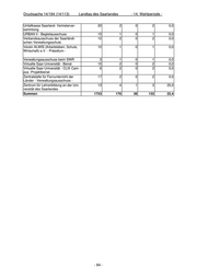 Drucksache 14/194 (14/113) Landtag des Saarlandes - 14. Wahlperiode - Unfallkasse Saarland- Vertreterver- 20 2 0 2 0,0 sammlung URBAN II - Begleitausschuss 15 1 0 1 0,0 Verbandsausschuss der Saarländi- 10 2 0 2 0,0 schen Verwaltungsschule Verein ALWIS (Arbeitsleben, Schule, 10 1 0 1 0,0 Wirtschaft) e.V. - Präsidium - Verwaltungsausschuss beim SWR 3 1 0 1 0,0 Virtuelle Saar-Universität - Beirat 15 2 0 2 0,0 Virtuelle Saar-Universität - CLIX Cam- 6 2 0 2 0,0 pus -Projektbeirat- Zentralstelle für Fernunterricht der 17 2 0 2 0,0 Länder - Verwaltungsausschuss - Zentrum für Lehrerbildung an der Uni- 13 4 1 3 25,0 versität des Saarlandes Summen 1733 170 38 132 22,4 - 64 -