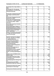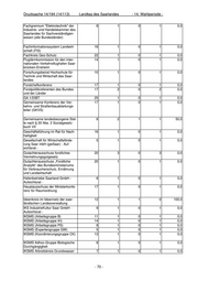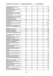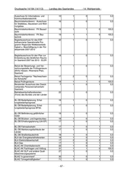Drucksache 14/194 (14/113) Landtag des Saarlandes - 14. Wahlperiode - Ausschuss für Informations- und 10 1 0 1 0,0 Kommunikationstechnik Bauministerkonferenz - Ausschuss 16 1 0 1 0,0 für Städtebau, Bauwesen und Woh- nungsbau Bauministerkonferenz - FK Bauauf- 19 1 1 0 100,0 sicht Bauministerkonferenz - FK Bau- 19 1 1 0 100,0 technik Begleitausschuss für das ESF- 22 1 0 1 0,0 kofinanzierte Operationelle Pro- gramm Regionale Wettbewerbsfä- higkeit u. Beschäftigung in der För- derperiode 2007-2013 Begleitausschuss für den Plan zur 18 1 0 1 0,0 Entwicklung des ländlichen Raums im Saarland 2007 bis 2013 - ELER Beirat der Bewertungs- und Ver- 7 1 0 1 0,0 rechnungsstelle der Prüfingenieure (BVS) Hessen, Rheinland-Pfalz, Saarland Beirat Fachagentur "Nachwachsen- 17 2 0 2 0,0 de Rohstoffe" Beirat Prüfingenieure 18 1 1 0 100,0 Beratender Ausschuss des Zweck- 7 1 0 1 0,0 verbandes Personennahverkehr Saarland Betriebswirtschaftsreferenten 22 1 0 1 0,0 (Forst) des Bundes und der Länder BL-DB Bedarfsplanung, Erhal- 18 1 0 1 0,0 tungsbedarfsprognose BL-DB Bedarfsplanung, Erhal- 17 1 0 1 0,0 tungsbedarfsprognose BFStr. BL-DB Beförderung gefährlicher 19 1 0 1 0,0 Güter BL-DB Brücken- und Ingenieurbau 18 1 0 1 0,0 BL-DB Erhaltungsplanung (UA-EP) 17 1 0 1 0,0 BL-DB Fahrradverkehr 17 1 0 1 0,0 BL-DB Markierungsfachleute der 17 1 0 1 0,0 Länder BL-DB Straßenbautechnik 18 1 0 1 0,0 BLA der Energiekartellreferenten 18 1 0 1 0,0 BLA Elektrizitätswirtschaft 17 2 0 2 0,0 BLA Gas 17 1 0 1 0,0 BLAC-AK Chemikalienrecht 22 1 0 1 0,0 BLAC-AK Fachfragen und Vollzug 31 1 1 0 100,0 BLAC-AK GLP und andere Quali- 27 1 0 1 0,0 tätssicherungssysteme BLAG "e-government" 30 1 0 1 0,0 BLAG "Unregelmäßigkeiten" 71 1 0 1 0,0 - 67 -
