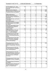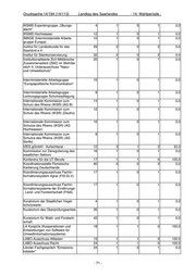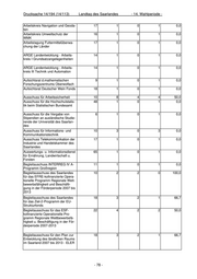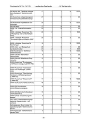 Drucksache 14/194 (14/113) Landtag des Saarlandes - 14. Wahlperiode - LIKI-AK Indikator Nr. 23 - natur- 18 1 0 1 0,0 schutzrelevante Daten der Normal- landschaft Messtechnisches Kolloquium 80 2 2 0 100,0 Ministerkonferenz für Raumordnung 16 1 1 0 100,0 - Ausschuss Recht und Verfahren - NABAU-Wärmeschutz 75 1 0 1 0,0 Naturpark Saar-Hunsrück e.V. 10 1 0 1 0,0 Normenausschuss 119-05-05 AA 24 1 1 0 100,0 "Abscheider" Personalentwicklungs- und Koordi- 8 1 1 0 100,0 nationsstelle Personalkommission 10 1 0 1 0,0 Physikalisch-chemische Analysen- 18 1 0 1 0,0 und Messverfahren zu § 7a WHG und AbwAG Pilotprojekt gegenseitige Kompe- 10 1 0 1 0,0 tenzfeststellung der staatlichen Umweltlaboratorien Projekt picobello 10 1 0 1 0,0 Prüfungsausschuss für den geh. 5 6 1 5 16,7 techn. VD, Fachrichtung Natur- schutz u. Landschaftspflege Prüfungsausschuss für den geho- 4 1 0 1 0,0 benen technischen Dienst in der Arbeits- und Immissionsschutzver- waltung Prüfungsausschuss für den geho- 5 4 3 1 75,0 benen technischen Verwaltungs- dienst - Fachrichtung Städtebau und Bauordnungswesen Prüfungsausschuss für den höh. 5 2 2 0 100,0 landwirtschaftl. Dienst u. des Lehr- amtes an landwirtschaftl. Fachschu- len Prüfungsausschuss für die Lauf- 5 5 0 5 0,0 bahn des gehobenen kartographi- schen Verwaltungsdienst Prüfungsausschuss für die Lauf- 5 2 0 2 0,0 bahn des gehobenen vermessungs- technischen Verwaltungsdienstes der Vermessungs- und Kataster- verwaltung Prüfungsausschuss für die verwal- 2 2 0 2 0,0 tungseigene Prüfung d. Messgehil- fen Prüfungsausschuss für Fahrlehrer 6 1 0 1 0,0 beim MUEV Prüfungsausschuss Vermessungs- 3 2 0 2 0,0 techniker Fachbereich Vermes- sungs- und Katasterwesen - 74 -