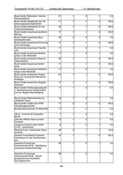 Drucksache 14/194 (14/113) Landtag des Saarlandes - 14. Wahlperiode - Arbeitskreis Navigation und Geoda- 17 1 0 1 0,0 ten Arbeitskreis Umweltschutz der 16 1 0 1 0,0 WMK Arbeitstagung Futtermittelüberwa- 17 1 0 1 0,0 chung der Länder ARGE Landentwicklung - Arbeits- 14 1 0 1 0,0 kreis I Grundsatzangelegenheiten ARGE Landentwicklung - Arbeits- 14 1 0 1 0,0 kreis III Technik und Automation Aufsichtsrat d.mathematischen 9 1 0 1 0,0 Forschungszentrums Oberwolfach Aufsichtsrat Deutscher Wein Fonds 18 1 0 1 0,0 Ausschuss für Arbeitssicherheit 10 8 4 4 50,0 Ausschuss für die Hochschulstatis- 48 1 0 1 0,0 tik beim Statistischen Bundesamt Ausschuss für die Vergabe von 6 1 0 1 0,0 Stipendien an ausländische Studie- rende der Universität des Saarlan- des Ausschuss für Informations- und 10 3 0 3 0,0 Kommunikationstechnik Ausschuss Telekommunikation der 17 1 0 1 0,0 Industrie und Handelskammer des Saarlandes Auswertungs- u. Informationsdienst 65 1 0 1 0,0 für Ernährung, Landwirtschaft u. Forsten Begleitauschuss INTERREG IV A- 11 1 0 1 0,0 Programm Großregion Begleitausschuss des Saarlandes 10 2 2 0 100,0 für das EFRE-kofinanzierte Opera- tionelle Programm Regionale Wett- bewerbsfähigkeit und Beschäfti- gung in der Förderperiode 2007 bis 2013 Begleitausschuss des Saarlandes 18 3 2 1 66,7 für das Ziel-2-Programm der EU- Strukturfonds Begleitausschuss für das ESF- 22 4 2 2 50,0 kofinanzierte Operationelle Pro- gramm Regionale Wettbewerbsfä- higkeit u. Beschäftigung in der För- derperiode 2007-2013 Begleitausschuss für den Plan zur 18 3 2 1 66,7 Entwicklung des ländlichen Raums im Saarland 2007 bis 2013 - ELER - 78 -
