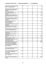 Drucksache 14/194 (14/113) Landtag des Saarlandes - 14. Wahlperiode - Deutsche Forschungsgemeinschaft 65 1 0 1 0,0 (DFG) - Hauptausschuss Deutsches Forschungszentrum für 6 1 0 1 0,0 künstliche Intelligenz (DFKI Auf- sichtsrat) DLG - Ausschuss Milch 22 1 0 1 0,0 eGo-Service-Saar GmbH - Auf- 6 1 0 1 0,0 sichtsrat Europäische EDV-Akademie des 8 1 1 0 100,0 Rechts (EEAR) gGmbH - Aufsichts- rat Europäisches Tourismus Institut an 6 1 0 1 0,0 der Universität Trier GmbH - Auf- sichtsrat - Expertengruppe f.Hochschul-, 16 1 1 0 100,0 Dienst-, Besoldungs- u.Versorgungsrecht Fachausschuss Technisches Kraft- 25 1 0 1 0,0 fahrwesen Fachhochschulinstitut für Techno- 10 2 1 1 50,0 logietransfer (FITT) - Kuratorium Fachinformationssystem Karlsruhe 22 1 0 1 0,0 - Gesellschafterversammlung Fachreferenten Integr. Ländliche 11 1 0 1 0,0 Entwicklung Flughafen Saarbrücken GmbH - 6 1 0 1 0,0 Aufsichtsrat - Förderverein INFO-Institut - Vor- 5 1 1 0 100,0 stand Forschungsbeirat der HTW 12 2 0 2 0,0 Frankreichzentrum der Universität 13 1 0 1 0,0 des Saarlandes - Beirat Fraunhofer Ausschuss 17 1 1 0 100,0 Gem. Technisches Sekretariat PGI 6 2 1 1 50,0 INTERREG III (A) Deutschland- Luxemburg mit der Deutschspra- chigen Gemeinschaft/Wallonische Region Belgiens Gemeinsame Wissenschaftsfkonfe- 20 1 0 1 0,0 renz-Arbeitskreis Europa Gemeinsame Wissenschaftskonfe- 50 1 0 1 0,0 renz - AG Pakt f.Forschung u.Innovation Gemeinsame Wissenschaftskonfe- 50 2 0 2 0,0 renz - Ausschuss Gemeinsamer Berufsbildungsaus- 18 1 1 0 100,0 schuss - 81 -