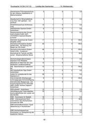 Drucksache 14/194 (14/113) Landtag des Saarlandes - 14. Wahlperiode - Zentralstelle für die Vergabe von 16 1 1 0 100,0 Studienplätzen (ZVS) - Unteraus- schuss Kapazitätsverordnung Zentralstelle für die Vergabe von 17 2 1 1 50,0 Studienplätzen (ZVS) - Unteraus- schuss Vergabeverordnung Zentralstelle für die Vergabe von 17 2 0 2 0,0 Studienplätzen (ZVS) - Verwal- tungsausschuss Zentralstelle für Fernstudien an 6 2 1 1 50,0 Fachhochschulen (ZFH) - Verwal- tungsrat Summen 4450 393 114 279 29,0 - 87 -