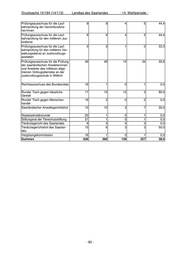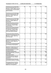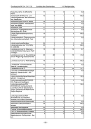 Drucksache 14/194 (14/113) Landtag des Saarlandes - 14. Wahlperiode - Konjunkturrat für die öffentliche 17 1 0 1 0,0 Hand Kontaktstelle für Wissens- und 10 1 1 0 100,0 Technologietransfer der Universität des Saarlandes Koordinierungsausschuss Börse 16 1 0 1 0,0 Koordinierungskreis "Nanotechno- 17 1 0 1 0,0 logie" des BMBF Kuratorium IZFP 17 1 0 1 0,0 Kuratorium Prüfungsausschuss 17 1 0 1 0,0 Betriebsleiter BO Strab Länder-Referentenbesprechung 16 1 1 0 100,0 "Luftfahrt" Länderarbeitskreis Telekommunika- 37 1 0 1 0,0 tion, Informationswirtschaft, Post Länderausschuss Bergbau 24 1 0 1 0,0 Länderreferenten zur VO (EWG) 22 1 1 0 100,0 Nr. 2081/92 Landesausschuss für Allgemein- 18 15 1 14 6,7 verbindlichkeitserklärung von Tarif- verträgen Landesausschuss für Berufsbildung 36 23 8 15 34,8 bei der Regierung des Saarlandes Landesausschuss für Weiterbildung 18 1 1 0 100,0 Landesbank Saar Girozentrale 12 1 0 1 0,0 SaarLB - Verwaltungsrat Landesbeirat SGB II 17 13 3 10 23,1 LEG Saar, Landesentwicklungsge- 7 2 0 2 0,0 sellschaft Saarland mbH - Auf- sichtsrat Leibniz-Institut für Neue Materialien 12 3 1 2 33,3 gGmbH - Kuratorium Lenkungsausschuss INTERREG 11 1 0 1 0,0 IVA-Programm Großregion Lenkungsausschuss PGI 7 2 1 1 50,0 INTERREG III (A) Deutschland- Luxemburg mit der Deutschspra- chigen Gemeinschaft/Wallonische Region Belgiens Lenkungsausschuss PGI 6 2 0 2 0,0 INTERREG III (A) Saarland- Moselle(-Lothringen)-Westpfalz Mittelstandsbeirat des Saarlandes 31 1 0 1 0,0 Nationaler Luftsicherheitsaus- 24 1 1 0 100,0 schuss Nationales Bildungspanel 20 1 0 1 0,0 Örtliche Sicherheitskommission 15 1 1 0 100,0 OVG für Rheinland-Pfalz, Koblenz 3 1 0 1 0,0 Patentverwertungsagentur der 6 1 0 1 0,0 Saarländischen Hochschulen - Bei- rat - - 83 -