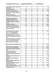 Drucksache 14/194 (14/113) Landtag des Saarlandes - 14. Wahlperiode - Personalentwicklungs- und Koordi- 8 1 0 1 0,0 nationsstelle Personalkommission 10 1 0 1 0,0 Präsidium der ZPT Saar e.V. 27 3 1 2 33,3 Programmgestaltungsgruppe im 16 1 0 1 0,0 Kuratorium für Technik und Bauwe- sen i.d.Lw. Projekt Lehrstelle jetzt 9 2 2 0 100,0 Projektkreis Camping/Reisemobile 10 1 1 0 100,0 Projektkreis Naturtourismus 10 1 1 0 100,0 Projektkreis Radtourismus 13 1 0 1 0,0 Projektkreis Römer und Kelten 17 1 0 1 0,0 Projektkreis Städte- und Kulturtou- 10 2 1 1 50,0 rismus Projektkreis Wandern 14 1 1 0 100,0 Projektkreis Wassertourismus 12 2 1 1 50,0 Prüfungsausschuss der Verwal- 6 1 0 1 0,0 tungs- u. Wirtschaftsakademie des Saarlandes (VWA) Prüfungsausschuss für den geh. 5 1 1 0 100,0 techn. VD, Fachrichtung Natur- schutz u. Landschaftspflege Prüfungsausschuss für den höh. 5 1 0 1 0,0 landwirtschaftl. Dienst u. des Lehr- amtes an landwirtschaftl. Fachschu- len Prüfungsausschuss für Wirtschafts- 154 1 0 1 0,0 prüfer und Vereidigte Buchprüfer der Länder Hessen, Rheinland- Pfalz, Saarland und Thüringen Referentensitzung Absatzförderung 20 1 1 0 100,0 Referentensitzung Agrarpolitik 17 1 1 0 100,0 Referentensitzung Berufsbildung 17 1 1 0 100,0 Referentensitzung Eier und Geflü- 18 1 0 1 0,0 gel Referentensitzung Ernäh- 17 1 1 0 100,0 rung/Schulverpflegung Referentensitzung Ernährungsvor- 26 1 1 0 100,0 sorge Referentensitzung Gartenbau (Er- 18 1 0 1 0,0 zeugung) Referentensitzung Gartenbau 20 1 1 0 100,0 (Markt) Referentensitzung Getreide und 16 1 1 0 100,0 Ölsaaten (Markt) Referentensitzung Haushalt und 36 1 1 0 100,0 Koordinierung (HuK) Referentensitzung Honig 18 1 1 0 100,0 Referentensitzung Ländlicher Raum 16 1 0 1 0,0 - Begleit Ausschuss - 84 -