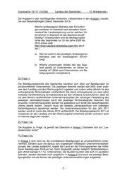 Drucksache 15/717 (15/338) Landtag des Saarlandes - 15. Wahlperiode - Beabsichtigt die Landesregierung, weitere landes- eigene Unternehmen zu gründen bzw. die Beteili- gung des Landes an Unternehmen zu erweitern oder plant sie, ihr unternehmerisches Engagement künftig zu verringern? Wie begründet die Landes- regierung die entsprechende Antwort? Zu Frage 9: Der Defizitabbau im Rahmen der Einhaltung der Schuldenbremse macht es erforder- lich, den Bereich der Landesgesellschaften mit dem Ziel der Entlastung des Landes- haushalts zu restrukturieren. Das schließt im Einzelnen eine Neugründung – wie im Fall der LEG Service GmbH – oder zusätzliche Beteiligungen – wie Im Fall der VSE AG – nicht aus, wenn dies etwa aus strukturpolitischen Gründen erforderlich wird. Zu den angestrebten Strukturanpassungen zählen insbesondere Restrukturierungs- maßnahmen im Bereich der SHS Strukturholding Saar GmbH, der IKS Industriekultur Saar GmbH sowie der Flughafen Saarbrücken GmbH, die bereits in die Wege geleitet wurden. Weitere Strukturanpassungsmaßnahmen werden auch im Bereich der übrigen Lan- desgesellschaften mit der Zielsetzung der Realisierung von Effizienzsteigerungen, der Entlastung des Landeshaushalts beziehungsweise der Erzielung verbesserter sozial-, kultur- oder wirtschaftspolitischer Effekte überprüft. Wie will die Landesregierung verhindern, dass Bürgern durch den pauschalen Hinweis auf Be- triebsgeheimnisse Informationen über staatliches Handeln vorenthalten werden, insbesondere vor dem Hintergrund eines Aufwuchses landeseigener Betriebe oder Unternehmen mit Landesbeteili- gung? Zu Frage 10: Die Landesregierung wird im Rahmen ihrer Möglichkeiten als (Mit-)Eigentümer darauf hinwirken, dass das Informationsbedürfnis von Bürgerinnen und Bürgern hinsichtlich der Erfüllung staatlicher Aufgaben durch landeseigene Betriebe oder Unternehmen mit Landesbeteiligung auch in Zukunft befriedigt wird. Beabsichtigt die Landesregierung die Prüfungs- rechte des Rechnungshofs auf landeseigene Un- ternehmen auszuweiten, um dadurch die Chance deutlich zu erhöhen, dass Verstöße gegen verga- be- und haushaltsrechtliche Vorschriften in Lan- desunternehmen schneller und einfacher aufge- deckt werden können? Wenn ja, in welcher Form soll eine solche Erweiterung der Prüfungsrechte erfolgen? Wenn nein, mit welcher Begründung lehnt die Landesregierung eine Erweiterung der bestehenden Prüfungsrechte ab? -6-