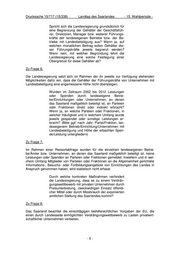 Drucksache 15/717 (15/338) Landtag des Saarlandes - 15. Wahlperiode - Die Angaben in den nachfolgenden Antworten, insbesondere in den Anlagen, resultie- ren aus Ressortabfragen (Stand: Dezember 2013). Welche landeseigenen Betriebe oder Einrichtun- gen existieren im Saarland nach aktuellem Kennt- nisstand der Landesregierung und an welchen Un- ternehmen im Saarland ist das Saarland aktuell beteiligt? (Insbesondere sind die Beteiligungsbe- richte des Saarlandes nur für die Jahre 2005 bis 2010 online unter http://www.saarland.de/beteiligungen.htm abruf- bar.) a) Wer ist Leiter/in des jeweiligen landeseigenen Betriebes oder der landeseigenen Einrich- tung? b) Welche prozentualen Anteile hält das Saar- land jeweils an Unternehmen, an denen es beteiligt ist? (Bitte nach Unternehmen und Be- teiligungsanteil untergliedern) Zu Frage 1: Die Beteiligungsberichte des Saarlandes beziehen sich allein auf Beteiligungen an privatrechtlichen Unternehmen. Die jeweiligen Berichte werden seit 2005 unter ande- rem dem Landtag und dem Rechnungshof zugeleitet und zudem online jährlich für das vorhergehende Wirtschaftsjahr veröffentlicht. Die damit einhergehende um zwei Jahre versetzte Veröffentlichung ist insbesondere auf den Umstand zurückzuführen, dass die mit dem Bericht veröffentlichten Unternehmenszahlen der vorherigen Feststellung des jeweiligen Jahresabschlusses durch den jeweiligen Wirtschaftsprüfer bedürfen. Die einzelnen Unternehmenszahlen werden bis spätestens zum Ende des darauffolgenden Jahres jeweils testiert. Danach muss der testierte Jahresabschluss vom jeweiligen Aufsichtsgremium genehmigt werden. Die Unternehmenszahlen für das Jahr 2011 werden somit im Laufe des Jahres 2013 veröffentlicht. Der Beteiligungsbericht 2011 ist inzwischen an den Landtag und den Rechnungshof verschickt worden und kann auch im Internet abgerufen werden. Zu Frage 1 a): Die Angaben zu Frage 1a gemäß der Übersicht in Anlage 1 beziehen sich auf „Lan- desbetriebe/-ämter“ Zu Frage 1 b): In Anlage 2 sind nicht nur die unmittelbaren Beteiligungen an privatrechtlichen Unter- nehmen, sondern auch die daraus sich ergebenden mittelbaren Unternehmensbeteili- gungen des Landes aufgeführt, soweit das Land auf die Führungsgremien der mittel- baren Beteiligungen Einfluss hat. Nicht dargestellt werden lediglich Splitterbeteiligun- gen (Anteil weniger 0,1 %). Unternehmen, die liquidiert wurden oder sich in Liquidation befinden, werden ebenfalls nicht aufgeführt. In Anlage 2 sind auch die jeweilige Betei- ligungshöhe und die Namen der jeweiligen Unternehmensführungen aufgelistet. -2-