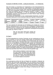 LANDTAG DES SAARLANDES 15. Wahlperiode Drucksache 15/1589-NEU (15/1522) 20.11.2015 ANTWORT zu der Anfrage des Abgeordneten Klaus Kessler (B90/Grüne) betr.: Unterbringung von Flüchtlingen in Kommunen Vorbemerkung des Fragestellers: „Die Wohnraumsituation für die ankommenden Flüchtlinge spitzt sich zunehmend zu. Insbesonde- re vor dem Hintergrund des bevorstehenden Win- ters besteht hier dringender Handlungsbedarf. Die Unterbringung der Flüchtlinge in Zelten, seien die- se auch winterfest, ist kein tragbarer Zustand. Das Land und die Kreise müssen in Zusammenarbeit mit den Kommunen die Unterbringung der Flücht- linge in geeignetem Wohnraum forcieren und be- schleunigen. Deswegen müssen alle erdenklichen Optionen in Bezug auf Immobilien in öffentlichem Besitz geprüft werden. Bund, Land und Kommu- nen müssen schnellstmöglich prüfen, welche zu- sätzlichen Möglichkeiten zur vorübergehenden Un- terbringung es etwa in seit Jahren leerstehenden Schulen und sonstigen Liegenschaften gibt. Der saarländische Innenminister hat, ohne dabei konk- ret zu werden, öffentlich die mangelnde Aufnah- mebereitschaft einiger Kommunen beklagt.“ Vorbemerkung der Landesregierung: Aufgrund § 1 Absatz 1 Nummer 1 des Landesaufnahmegesetzes sind die Gemeinden verpflichtet, vom Land verteilte Asylbewerber aufzunehmen. Nach den Regelungen der Saarländischen Aufenthaltsverordnung verteilt das Landesverwaltungsamt die Asylbe- werber, soweit die Unterbringung nach deren Erstaufnahme nicht in den landeseige- nen Einrichtungen erfolgt, auf den Regionalverband Saarbrücken und die Landkreise zur (Weiter-)Verteilung auf die Gemeinden sowie auf die Landeshauptstadt Saarbrü- cken zur Aufnahme und Unterbringung. Ausgegeben: 23.11.2015 (01.10.2015)