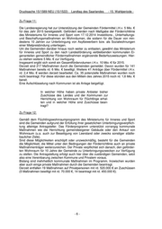 Drucksache 15/1589-NEU (15/1522) Landtag des Saarlandes - 15. Wahlperiode - Zu Frage 11: Die Landesregierung hat zur Unterstützung der Gemeinden Fördermittel i.H.v. 5 Mio. € für das Jahr 2015 bereitgestellt. Gefördert werden nach Maßgabe der Förderrichtlinie des Ministeriums für Inneres und Sport vom 17.12.2014 Investitions-, Unterhaltungs- und Beschaffungsmaßnahmen an Wohnräumen, die sodann für die Dauer von min- destens 10 Jahren zur Unterbringung von Asylbewerbern bzw. als Sozialwohnungen einer Mietpreisbindung unterliegen. Um die Gemeinden darüber hinaus noch weiter zu entlasten, gewährt das Ministerium für Inneres und Sport zu den nach Landesförderung verbleibenden kommunalen Ei- genanteilen gemeindlicher Fördermaßnahmen ergänzende Bedarfszuweisungen. Hier- zu stehen weitere 5 Mio. € zur Verfügung. Insgesamt ergibt sich somit ein Gesamtfördervolumen i.H.v. 10 Mio. € für 2015. Derzeit sind 217 Maßnahmen durch die Gemeinden gemeldet. Davon wurden für 141 Maßnahmen bereits rd. 6 Mio. € bewilligt. Weitere 41 Anträge über Fördermittel i.H.v. rd. 2,4 Mio. € werden derzeit bearbeitet. Ca. 35 potenzielle Maßnahmen wurden noch nicht beantragt. Für diese stünden aus den Mitteln des Jahres 2015 noch rd. 1,6 Mio. € bereit. Eine Aufschlüsselung nach Kommunen ist als Anlage beigefügt. In welcher Höhe haben private Anbieter bisher Zuschüsse des Landes und der Kommunen zur Herrichtung von Wohnraum für Flüchtlinge erhal- ten und in welcher Höhe sind Zuschüsse bean- tragt? Zu Frage 12: Gemäß dem Flüchtlingswohnraumprogramm des Ministeriums für Inneres und Sport sind die Gemeinden aufgrund der Erfüllung ihrer gesetzlichen Unterbringungsverpflich- tung alleinige Antragsteller. Das Förderprogramm unterstützt vorrangig kommunale Maßnahmen wie die Herrichtung gemeindeeigener Gebäude oder den Ankauf von Wohnraum (u.a. auch zur Beseitigung von Leerstand oder zwecks sonstiger städte- baulicher Ziele). Sind diese Möglichkeiten erschöpft oder unzweckmäßig, besteht für die Gemeinden die Möglichkeit, die Mittel unter den Bedingungen der Förderrichtlinie auch an private Maßnahmenträger weiterzureichen. Der Private verpflichtet sich danach, den geförder- ten Wohnraum für 10 Jahre der Gemeinde zu Unterbringungszwecken zur Verfügung zu stellen. Die Antragstellung erfolgt auch hier über die zuständigen Gemeinden, setzt also eine Vereinbarung zwischen Kommune und Privatem voraus. Bislang sind mehrheitlich kommunale Maßnahmen im Programm. Inzwischen wurden aber auch einige private Maßnahmen durch die Gemeinden beantragt. Derzeit entfallen 19 Maßnahmen auf Privatpersonen mit rd. 520.000 € an Zuschüssen (5 Maßnahmen bewilligt mit rd. 70.000 €, 14 beantragt mit rd. 450.000 €). -6-