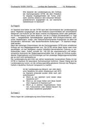 Drucksache 16/500 (16/470) Landtag des Saarlandes - 16. Wahlperiode - Wie bewertet die Landesregierung den Einfluss der Dachorganisation DITIB, die dem Präsidium für religiöse Angelegenheiten der Türkei unter- steht, welches wiederum dem türkischen Minister- präsidentenamt angegliedert ist, auf islamische Gebetshäuser im Saarland? Zu Frage 6: Im Saarland sind bisher von der DITIB nach dem Kenntnisstand der Landesregierung keine Tätigkeiten ausgegangen, die das friedliche Zusammenleben der verschiedenen Religionen und Kulturen auf der Basis unseres Grundgesetzes stören oder gefährden. So konnten bislang auch keine Aktionen, wie sie in anderen Bundesländern zu Tage traten – beispielsweise Spitzeltätigkeiten gegenüber AKP-/Erdogan-kritischen türki- schen Staatsbürgern, kriegs- oder märtyrerverherrlichende Propaganda vor allem bei Schulkindern, demokratie- oder deutschfeindliche Äußerungen – im Saarland festge- stellt werden. Nach den bisherigen Erkenntnissen übt die Dachorganisation DITIB einen erheblichen Einfluss auf ihre Mitgliedsgemeinden aus. Die DITIB vertrat dabei bisher stets einen gemäßigten, mit den Maßgaben unserer freiheitlich-demokratischen Ordnung zu ver- einbarenden Islam. Zudem schreibt Art. 140 GG die organisatorische und weltan- schauliche Autonomie der Religionsgemeinschaften fest, so dass ein Einfluss auslän- discher Organisationen und Einrichtungen auf hier ansässige Religionsgemeinschaften per se noch nicht rechtswidrig ist. Die Landesregierung wird ihren seit Jahren bestehenden konstruktiven Dialog mit der DITIB im Saarland mit besonderer Aufmerksamkeit fortführen. Diesen Dialog wird die Landesregierung nutzen, um die verfassungsmäßig gebotenen Grenzen der Religions- freiheit in deutlichen Konturen transparent zu machen. Ist der Landesregierung bekannt, wie viele islami- sche Geistliche mit einem Arbeitsvisum seit 2010 ins Saarland entsendet wurden (bitte nach Jahr aufschlüsseln)? a) Wenn ja, aus welchem Land reisten diese Geistlichen ein? b) Wenn ja, wie lange hielten sich diese Geistli- chen insgesamt im Saarland auf? c) Wenn ja, in welchen Organisationen, Verei- nen, Kulturzentren oder Gebets-häusern ha- ben diese Geistlichen gearbeitet? Zu Frage 7: Hierzu liegen der Landeregierung keine Erkenntnisse vor. -5-