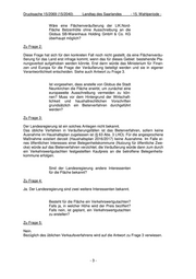 Drucksache 15/2069 (15/2040) Landtag des Saarlandes - 15. Wahlperiode - Besteht für die Pläne ein Emissionsgutachten? Trifft es zu, dass dies im Rahmen der Vorabstim- mung gefordert worden war? Falls ja, welche Zah- len werden darin in Bezug auf die zu erwartenden Verkehrsemissionen genannt? Falls nein, soll ein solches Gutachten erstellt werden und wenn ja, wann? Zu Frage 6: Nein, im Rahmen der Vorabstimmung zu der informellen Planungsphase war auch kein solches Gutachten gefordert. Falls es zu einem förmlichen Raumordnungs- und einem Zielabweichungsverfahren kommt, würde im Rahmen dieser Verfahren und des ggf. folgenden Bauleitplanungs- und Baugenehmigungsprozesses der Umfang aller erforderlichen Untersuchungen weiter definiert werden. Hat die Landesregierung Kenntnisse über einen Ausgliederungsantrag des Lebenshilfe e.V. für ei- ne LIK.Nord-Fläche im Stadtteil Neunkirchen Hei- nitz? Falls ja, wie soll dieser Antrag behandelt werden? Zu Frage 7: Ja. Die Stadt Neunkirchen hat bereits gegenüber dem MUV, dem Zweckverband LIK.Nord und der Werkstatt für Behinderte der Lebenshilfe (WZB) dargelegt, dass sie eine bauliche Entwicklung der WZB in Heinitz nur befürworten würde, wenn das Kern- gebiet LIK.Nord für ein solches Vorhaben nicht in Anspruch genommen würde. Es gä- be nach Aussage der Stadt Alternativen für die bauliche Entwicklungsplanung der Le- benshilfe ohne Beanspruchung der Kernzone. Trifft es zu, dass nach dem von Globus gestellten Antrag auf ein Vorverfahren nun ein Antrag auf Einleitung eines Raumordnungsverfahrens und Ausgliederung der Fläche aus dem Kerngebiet der LIK.Nord von der Stadt Neunkirchen gestellt wur- de? Welche Auswirkungen hat dies auf die Gel- tendmachung von Landesmitteln für das Verfah- ren? Entstehen dem Land durch Wechsel des An- tragstellers Kosten und wenn ja, in welcher Höhe? Zu Frage 8: Nein. -4-