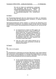 Drucksache 15/789 (15/729) Landtag des Saarlandes - 15. Wahlperiode - Wie wird von Seiten der saarländischen Landesregie- rung sichergestellt, dass bis zum Inkrafttreten der Präimplantationsdiagnostikverordnung (PIDV) am 1.2.2014 reproduktionsmedizinische Einrichtungen kei- ne Präimplantationsdiagnostik (PID) anbieten/durch- führen? Zu Frage 1: Die Präimplantationsdiagnostik dient der Untersuchung der Zellen vor Implantation. Dazu sind die Mittel der Reproduktionsmedizin erforderlich. Im Saarland existieren zwei Reproduktionsmedizinische Zentren. Reproduktionsmedizinische Zentren bedürfen zur Zulassung der Überprüfung durch die saarländische Ärztekammer. Die fachliche Aufsicht und das Recht der Zulassung wurden von der obersten Gesundheitsbehörde der Ärztekammer per Verordnung über- tragen. a) Ist entsprechend § 3 Absatz 2a PIDV geplant, bei der Zulassung der Zentren, in denen die PID durch- geführt werden darf, mit anderen Bundesländern zu kooperieren und einen Staatsvertrag zur Errichtung einer gemeinsamen Stelle abzuschließen, die über die Zulassung entscheidet? Falls ja, mit welchen Bundesländern fanden bzw. finden Gespräche statt und welchen Stand haben diese? b) Falls nein, warum nicht? Welche Behörde soll im Saarland diese Funktion wahrnehmen und über die Zulassung entscheiden? Zu Frage 2: a) Nein, dies ist nicht geplant. b) Der Saarländischen Landesregierung sind keine Fälle bekannt, dass Länder beabsich- tigen gemeinsame Zulassungsstellen für Präimplantationsdiagnostikzentren einzurich- ten. Im Saarland wird das Ministerium für Soziales, Gesundheit, Frauen und Familie als oberste Gesundheitsbehörde über die Zulassung entscheiden. a) Ist eine zentrale Ethikkommission für Präimplantati- onsdiagnostik im Saarland vorgesehen, wie dies die Mehrheit der Bundesländer im Gesundheitsaus- schuss des Bundesrates in der PIDV verankern wollte? Ist vorgesehen, dem Vorbild der Bundeslän- der Hamburg, Schleswig-Holstein, Bremen, Nieder- sachsen, Brandenburg und Mecklenburg-Vorpom- mern zu folgen und via Staatsvertrag eine gemein- same Ethikkommission zu bilden? -2-