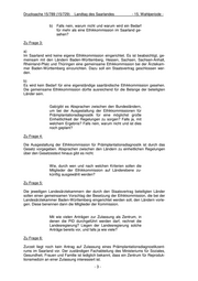 Drucksache 15/789 (15/729) Landtag des Saarlandes - 15. Wahlperiode - b) Falls nein, warum nicht und warum wird ein Bedarf für mehr als eine Ethikkommission im Saarland ge- sehen? Zu Frage 3: a) Im Saarland wird keine eigene Ethikkommission eingerichtet. Es ist beabsichtigt, ge- meinsam mit den Ländern Baden-Württemberg, Hessen, Sachsen, Sachsen-Anhalt, Rheinland-Pfalz und Thüringen eine gemeinsame Ethikkommission bei der Ärztekam- mer Baden-Württemberg einzurichten. Dazu soll ein Staatsvertrag geschlossen wer- den. b) Es wird kein Bedarf für eine eigenständige saarländische Ethikkommission gesehen. Die gemeinsame Ethikkommission dürfte ausreichend für die Belange der beteiligten Länder sein. Gab/gibt es Absprachen zwischen den Bundesländern, um bei der Ausgestaltung der Ethikkommissionen für Präimplantationsdiagnostik für eine möglichst große Einheitlichkeit der Regelungen zu sorgen? Falls ja, mit welchem Ergebnis? Falls nein, warum nicht und ist dies noch geplant? Zu Frage 4: Die Ausgestaltung der Ethikkommission für Präimplantationsdiagnostik ist durch das Gesetz vorgegeben. Absprachen zwischen den Ländern zu einheitlichen Regelungen über den Gesetzestext hinaus gibt es nicht. Wie, durch wen und nach welchen Kriterien sollen die Mitglieder der Ethikkommission auf Länderebene zu- künftig ausgewählt werden? Zu Frage 5: Die jeweiligen Landesärztekammern der durch den Staatsvertrag beteiligten Länder sollen einen gemeinsamen Vorschlag der Besetzung der Ethikkommission, die bei der Landesärztekammer Baden-Württemberg eingerichtet werden soll, den Ländern vorle- gen. Diese benennen dann die Mitglieder der Kommission. Mit wie vielen Anträgen zur Zulassung als Zentrum, in denen die PID durchgeführt werden darf, rechnet die Landesregierung? Liegen der Landesregierung solche Anträge bereits vor, und falls ja wie viele? Zu Frage 6: Zurzeit liegt noch kein Antrag auf Zulassung eines Präimplantationsdiagnostikzent- rums im Saarland vor. Der zuständigen Fachabteilung des Ministeriums für Soziales, Gesundheit, Frauen und Familie ist lediglich bekannt, dass ein Zentrum für Reproduk- tionsmedizin an einer Zulassung interessiert ist. -3-