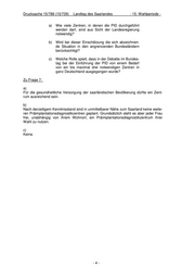 Drucksache 15/789 (15/729) Landtag des Saarlandes - 15. Wahlperiode - a) Wie viele Zentren, in denen die PID durchgeführt werden darf, sind aus Sicht der Landesregierung notwendig? b) Wird bei dieser Einschätzung die sich abzeichnen- de Situation in den angrenzenden Bundesländern berücksichtigt? c) Welche Rolle spielt, dass in der Debatte im Bundes- tag bei der Einführung der PID von einem Bedarf von ein bis maximal drei notwendigen Zentren in ganz Deutschland ausgegangen wurde? Zu Frage 7: a) Für die gesundheitliche Versorgung der saarländischen Bevölkerung dürfte ein Zent- rum ausreichend sein. b) Nach derzeitigem Kenntnisstand sind in unmittelbarer Nähe zum Saarland keine weite- ren Präimplantationsdiagnostikzentren geplant. Grundsätzlich steht es aber jeder Frau frei, unabhängig von ihrem Wohnort, ein Präimplantationsdiagnostikzentrum ihrer Wahl zu nutzen. c) Keine. -4-