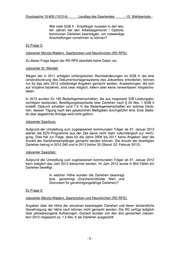 Drucksache 15/405 (15/314) Landtag des Saarlandes - 15. Wahlperiode - Wie viele SGB II - Empfänger mussten in den letz- ten Jahren bei den Arbeitsagenturen / Options- kommunen Darlehen beantragen, um notwendige Anschaffungen vornehmen zu können? Zu Frage 2: Jobcenter Merzig-Wadern, Saarbrücken und Neunkirchen (RD RPS): Zu dieser Frage liegen der RD RPS ebenfalls keine Daten vor. Jobcenter St. Wendel: Wegen der in 2011 erfolgten umfangreichen Rechtsänderungen im SGB II, die eine Umstrukturierung des Dokumentvorlagensystems des Jobcenters erforderten, können nur für das Jahr 2012 vollständige Angaben gemacht werden. Auswertungen, die sich auf Vorjahre beziehen, sind zwar möglich, liefern aber keine verwertbaren Vergleichs- daten. In 2012 wurden für 160 Bedarfsgemeinschaften, die aus insgesamt 328 Leistungsbe- rechtigten bestanden, Bewilligungsbescheide über Darlehen nach § 24 Abs. 1 SGB II erstellt. Dadurch erhielten rund 7,5 % der Bedarfsgemeinschaften ein solches Darle- hen, dessen Tilgung nach den gesetzlichen Maßgaben durchgeführt wird. Eine Statis- tik über abgelehnte Anträge wird nicht geführt. Jobcenter Saarlouis: Aufgrund der Umstellung zum zugelassenen kommunalen Träger ab 01. Januar 2012 stehen die EDV-Programme aus der Zeit davor nicht mehr vollumfänglich zur Verfü- gung. Dies hat zur Folge, dass für die Jahre 2009 bis 2011 keine Angaben über die Anzahl der Darlehensempfänger gemacht werden können. Die Anzahl der bewilligten Darlehen betrug in 2012 240 und in 2013 bisher 33 (Stand: 22. Februar 2013). Jobcenter Saarpfalz: Aufgrund der Umstellung zum zugelassenen kommunalen Träger ab 01. Januar 2012 kann lediglich das Jahr 2012 betrachtet werden. Im Jahr 2012 wurde in 804 Fällen ein Darlehen bewilligt. In welcher Höhe wurden die Darlehen beantragt bzw. genehmigt (Durchschnittlicher Wert und Grenzwert für genehmigungsfähige Darlehen)? Zu Frage 3: Jobcenter Merzig-Wadern, Saarbrücken und Neunkirchen (RD RPS): Angaben über die Höhe der einzelnen beantragten Darlehen und deren letztendliche Genehmigung der Höhe nach können nicht gemacht werden. Die RD verfügt lediglich über jahresbezogene Auflistungen. Danach wurden von den drei genannten Jobcen- tern 2012 insgesamt ca. 1,5 Mio. € als Darlehen ausgezahlt. -3-