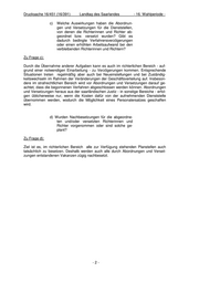 Drucksache 16/451 (16/391) Landtag des Saarlandes - 16. Wahlperiode - c) Welche Auswirkungen haben die Abordnun- gen und Versetzungen für die Dienststellen, von denen die Richterinnen und Richter ab- geordnet bzw. versetzt wurden? Gibt es dadurch bedingte Verfahrensverzögerungen oder einen erhöhten Arbeitsaufwand bei den verbleibenden Richterinnen und Richtern? Zu Frage c): Durch die Übernahme anderer Aufgaben kann es auch im richterlichen Bereich - auf- grund einer notwendigen Einarbeitung - zu Verzögerungen kommen. Entsprechende Situationen treten regelmäßig aber auch bei Neueinstellungen und bei Zuständig- keitswechseln im Rahmen der Veränderungen der Geschäftsverteilung auf. Insbeson- dere im strafrechtlichen Bereich wird vor Abordnungen und Versetzungen darauf ge- achtet, dass die begonnenen Verfahren abgeschlossen werden können. Abordnungen und Versetzungen heraus aus der saarländischen Justiz - in sonstige Bereiche - erfol- gen üblicherweise nur, wenn die Kosten dafür von der aufnehmenden Dienststelle übernommen werden, wodurch die Möglichkeit eines Personalersatzes geschaffen wird. d) Wurden Nachbesetzungen für die abgeordne- ten und/oder versetzten Richterinnen und Richter vorgenommen oder sind solche ge- plant? Zu Frage d): Ziel ist es, im richterlichen Bereich alle zur Verfügung stehenden Planstellen auch tatsächlich zu besetzen. Deshalb werden auch alle durch Abordnungen und Verset- zungen entstandenen Vakanzen zügig nachbesetzt. -2-