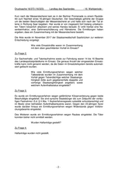 Drucksache 16/373 (16/323) Landtag des Saarlandes - 16. Wahlperiode - Kurz nach der Messerstecherei kam es in der Berliner Promenade zu einem Raubde- likt zum Nachteil eines 16-jährigen Deutschen. Der Geschädigte gehörte der Gruppe um die beiden Beschuldigten der Messerstecherei an und hatte sich nach der Tat al- leine in Richtung Saar begeben. Hier wurde er von insgesamt fünf bislang unbekann- ten Tätern körperlich attackiert und seines Handys beraubt. Er erlitt hierbei eine Na- senbeinfraktur, eine Gehirnerschütterung und Hämatome. Die Ermittlungen haben ergeben, dass ein Zusammenhang mit der Messerstecherei besteht. Die Akte wurde im November 2017 der Staatsanwaltschaft Saarbrücken zur weiteren Entscheidung vorgelegt. Wie viele Einsatzkräfte waren im Zusammenhang mit dem oben geschilderten Vorfall im Einsatz? Zu Frage 2: Zur Sachverhalts- und Tatortaufnahme sowie zur Fahndung waren 14 bis 16 Beamte des Landespolizeipräsidiums im Einsatz. Die genaue Anzahl der eingesetzten Einsatz- kräfte kann nicht genannt werden, da die Daten im Einsatzleitsystem bereits automati- siert gelöscht wurden. Wie viele Ermittlungsverfahren wegen welcher Tatbestände wurden im Zusammenhang mit dem Vorfall gegen Tatverdächtige welcher Staatsange- hörigkeit (bitte auch gegebenenfalls doppelte und vorherige Staatsangehörigkeit angeben) sowie welchem Aufenthaltsstatus eingeleitet? Zu Frage 3: Es wurde ein Ermittlungsverfahren wegen gefährlicher Körperverletzung gegen beide Beschuldigte eingeleitet. Sie sind syrische Staatsbürger die zum Zeitpunkt der vorläu- figen Festnahme i.S.d. § 4 Abs. 1 Asylverfahrensgesetz subsidiär schutzberechtigt und im Besitz einer befristeten Aufenthaltserlaubnis waren. Gegen den 23-jährigen Syrer wurde darüber hinaus ein Ermittlungsverfahren wegen Widerstands gegen Vollstre- ckungsbeamte eingeleitet. Des Weiteren wurde ein Ermittlungsverfahren wegen Raubes eingeleitet. Die Täter konnten bisher nicht ermittelt werden. Wurden Haftanträge gestellt? Zu Frage 4: Haftanträge wurden nicht gestellt. -2-