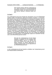 Drucksache 15/615 (15/522)           Landtag des Saarlandes        - 15. Wahlperiode - Nach welchen Kriterien wählt die Landesregierung aus, welche Dokumente zur Hochschullandschaft veröffentlicht werden und welche Dokumente nur zum internen Gebrauch verwendet werden dür- fen? Zu Frage 5: Die Landesregierung hat bei der Auswahl der Informationen, die an die Öffentlichkeit gegeben werden, die allgemeinen datenschutzrechtlichen Vorgaben zu berücksichti- gen. Darüber hinaus kann sie die Weitergabe von Informationen verweigern, wenn der Kernbereich der Kompetenzen (exekutive Eigenverantwortung) tangiert wird. Die ver- fassungsrechtliche Gewährleistung des Kernbereichs exekutiver Eigenverantwortung zielt auf die Wahrung der Funktionsfähigkeit der Regierung ab und schützt deren Ei- genständigkeit bei der Erfüllung der ihr übertragenen Aufgaben. Ihre Verantwortlichkeit gegenüber dem Parlament und dem Staatsvolk setzt notwendigerweise einen Kernbe- reich exekutiver Eigenverantwortung voraus, der weder Ausforschungseingriffen des Parlaments ausgesetzt ist noch von eigenen Auskunftspflichten überlagert wird. Dazu gehört die Willensbildung innerhalb der Regierung sowohl hinsichtlich der Erörterungen im Kabinett als auch bei der Vorbereitung von Ressort- und Kabinettsentscheidungen, die sich vornehmlich in ressortübergreifenden und internen Abstimmungsprozessen vollziehen. Zum Kernbereich gehört außerdem die Entscheidung, ob die Regierung sich in einer politischen Frage festlegen will oder nicht. Auch müssen die zugehörigen Institutionen und Organisationen vor Schädigungen aufgrund von übereilten Informati- onen an die Öffentlichkeit geschützt werden. Wie plant die Landesregierung mit dem fertigen Gutachten umzugehen? Ist eine komplette Veröf- fentlichung geplant? Falls ja, zu welchem Zeit- punkt und in welcher Form? Falls nein, wem soll dieses Gutachten mit welcher Begründung zur Verfügung gestellt werden und wie begründet sich der Öffentlichkeitsausschluss? Zu Frage 6: Ja, die Landesregierung wird das Gutachten unmittelbar nach Verabschiedung durch den Wissenschaftsrat veröffentlichen. -3-