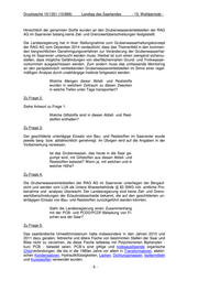 LANDTAG DES SAARLANDES 15. Wahlperiode Drucksache 15/1351 (15/888) 22.04.2015 ANTWORT zu der Anfrage des Abgeordneten Hubert Ulrich (B90/Grüne) betr.: Giftstoffe unter Tage und Gefährdung des Oberflächen- und Grundwassers durch die Pläne der RAG AG zur Flutung Vorbemerkung des Fragestellers: „Seit 1993 wurden im Saarland unter Tage Abfall- und Reststoffe eingelagert oder zur Stabilisierung bzw. Verfüllung von Schächten verwendet. Begonnen wurde mit der Deponierung von 10.000 Fässern mit Asbest-Beton. Darüber hinaus bein- haltete das Konzept von Saarberg zur Verbrin- gung von Reststoffen aus dem Jahr 1993 zum ei- nen sogenannte kohlestämmige Reststoffe, die bei der Verbrennung von Kohle in Kraftwerken üb- rig bleiben, und zum anderen auch solche Stoffe, die mit dem Abbau oder der Kohle nichts zu tun haben: Stäube aus Müllverbrennungsanlagen, Rückstände aus Bodenwaschanlagen, Stäube und Sande aus Gießereien. Auch in Nordrhein-Westfalen wurde in der Ver- gangenheit Giftmüll unter Tage gebracht. Hier warnt der ehemalige Abteilungsleiter im Umwelt- ministerium sowie Wasserexperte, Harald Fried- rich, für den Fall einer Flutung der Schächte ein- dringlich vor Gefahren für das Grundwasser. Die RAG AG hat Ende Februar 2014 ihr Gruben- wasserhaltungskonzept für das Saarland vorge- stellt. Vorgesehen ist ein kompletter Anstieg des Grubenwassers. Giftstoffe können hierdurch ver- mehrt ins Oberflächenwasser gelangen. Ebenso besteht die Gefahr einer Verunreinigung des Grundwassers, wenn die Schadstoffe durch das Wasser gelöst werden.“ Ausgegeben: 22.04.2015 (17.04.2014)