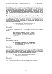 Drucksache 15/450 (15/343) Landtag des Saarlandes - 15. Wahlperiode - Eine Budgetierung mit Förderschullehrkräften ist angedacht für die Förderbedarfe Ler- nen, Sprache sowie für emotionale und soziale Entwicklung für alle Regelschulen, zu- nächst beginnend mit den Grundschulen. Weiterhin werden für Kinder mit Anspruch auf besondere pädagogische Förderung und Unterstützung im Bereich der körperli- chen und motorischen Entwicklung, der geistigen Entwicklung, des Hörens oder Se- hens zusätzlich entsprechende Förderstunden durch Förderschullehrkräfte zugewie- sen. Dadurch wird eine personale Kontinuität durch Einsatz eines oder – bei Bedarf – meh- rerer Sonderpädagogen für die fachliche, teamorientierte und präventive Arbeit an ei- ner Regelschule geschaffen. So ist dann der Grundschule eine zusätzlich qualifizierte sonderpädagogische Lehrkraft zugewiesen. Benötigt der Förderpädagoge fachliche Unterstützung für Maßnahmen, in denen er nicht ausgebildet ist, kann er sich an das regionale Förderzentrum wenden. c) Welche konkreten Veränderungen wird es dazu im kommenden Schuljahr geben? Zu Frage 3 c): Für das nächste Schuljahr sollen die in a) und b) genannten Maßnahmen umgesetzt werden. Wann wird die in der Antwort zu Frage 7 angekün- digte Budgetierung der Regelschulen mit Förder- schullehrkräften für die genannten Förderbedarfe eingeführt? Zu Frage 4: Siehe Antwort zu Frage 3 c. a) Betrifft diese Budgetierung alle Grundschulen und weiterführende Schulen oder erfolgt eine schrittweise Einführung? Zu Frage 4 a): In vielen Regelschulen sind Förderschullehrkräfte schon fest budgetiert. Bisher gab es dazu jedoch keine Tätigkeitsbeschreibung der Förderschullehrkräfte und damit rechtli- che Unsicherheiten. Dies wird zurzeit mit allen Beteiligten (Förderzentren, Personalrä- ten, Lehrkräften) diskutiert und entsprechende Regelungen formuliert. b) Nach welchem Berechnungsmodell wird die Budgetierung vorgenommen? Zu Frage 4 b): Auch ein entsprechendes Berechnungsmodell wird gemeinsam erarbeitet. -5-
