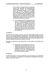 Drucksache 15/450 (15/343) Landtag des Saarlandes - 15. Wahlperiode - In der Antwort zu Frage 9 gibt die Landesregie- rung an, dass hinsichtlich der Beschulung eines Schülers/einer Schülerin mit sonderpädagogi- schem Förderbedarf entweder an einer Regel- schule oder an einer Förderschule „weitestge- hend“ Wahlfreiheit für die Erziehungsberechtigten besteht. Im Koalitionsvertrag ist allerdings verein- bart, dass „Eltern ein echtes Wahlrecht zwischen Regelschulen und Förderschulen erhalten“ sollen. Diesbezüglich ergeben sich aus der Antwort der Landesregierung folgende Nachfragen: a) Ist die Landesregierung der Auffassung, dass das von ihr genannte „weitestgehende Wahl- recht“ kein „echtes Wahlrecht“ ist, das durch die Regelungen der Integrationsverordnung im Hinblick auf räumliche, personelle und sächliche Voraussetzungen für eine Beschu- lung von Kindern mit einer Behinderung in Regelschulen eingeschränkt wird und ohnehin eine Regelbeschulung erst auf Antrag der El- tern möglich ist? Zu Frage 5 a): Das Ministerium für Bildung und Kultur räumt den Erziehungsberechtigten ein Wahl- recht ein und berät alle Beteiligten diesbezüglich. Derzeit behält die Integrationsver- ordnung noch ihre Gültigkeit, bis deren Änderungen - eher deren Neufassung - im Blick auf die Umsetzung der Inklusion allumfänglich sein wird. Es wäre nicht zielführend, die geltende Integrationsverordnung stückweise zu ersetzen. Bezüglich der Wahlfreiheit wurden Regelungen in Rundschreiben an alle Regelschulen formuliert. b) Beabsichtigt die Landesregierung diese Ein- schränkungen abzuschaffen oder ist sie der Auffassung, dass das von ihr formulierte „wei- testgehend bestehende Wahlrecht“ der Eltern ausreichend ist, die UN - Behindertenrechts- konvention umzusetzen und im Übrigen auch den Koalitionsvertrag zu erfüllen? Zu Frage 5 b): Die Rechtsgrundlagen zur inklusiven Beschulung von allen Kindern und Jugendlichen (nicht nur von Kindern und Jugendlichen mit besonderen Förderbedarfen) werden ge- ändert (s. Antwort zur Frage 1) -6-