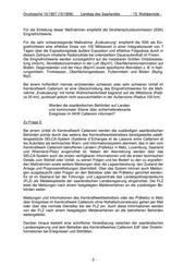 Drucksache 15/1907 (15/1808) Landtag des Saarlandes - 15. Wahlperiode - Für die Einleitung dieser Maßnahmen empfiehlt die Strahlenschutzkommission (SSK) Eingreifrichtwerte. Für die sehr schwerwiegende Maßnahme „Evakuierung“ empfiehlt die SSK als Ein- greifrichtwert eine effektive Dosis von 100 Millisievert in einer Integrationszeit von 7 Tagen über die Expositionspfade äußere Exposition und effektive Folgedosis durch in diesem Zeitraum inhalierte Radionuklide bei unterstelltem Daueraufenthalt im Freien. Die Eingreifrichtwerte werden zurückgeführt auf die messbaren Größen Ortsdosisleis- tung (mSv/h), Akivitätskonzentration in der Luft (Bq/m³), Oberflächenkontamination auf Boden, Gegenständen und der Haut (Bq/m²) sowie spezifische Aktivitäten z. B. in Nah- rungsmitteln, Trinkwasser, Oberflächengewässer, Futtermitteln und Böden (Bq/kg, Bq/l). Bei einem hoffentlich niemals eintretenden schweren oder sehr schweren Unfall im Kernkraftwerk Cattenom ist eine Überschreitung des Eingreifrichtwertes für die Maß- nahme „Evakuierung“ mit hoher Wahrscheinlichkeit begrenzt auf die Mittelzone (Radi- us 20 km), punktuell jedoch nicht auszuschließen in der Außenzone (Radius 100 km). Werden die saarländischen Behörden auf Landes- und kommunaler Ebene über sicherheitsrelevante Ereignisse im AKW Cattenom informiert? Zu Frage 3: Bei einem Unfall im Kernkraftwerk Cattenom werden die zuständigen saarländischen Behörden primär durch das seitens des Kernkraftwerkbetreibers bereitgestellte satelli- tengestützte SELCA-System (Système d`Echanges et de Liaisons entre Cattenom et les Autorités) als technisches Warn- und Informationssystem alarmiert, das in den vom Kernkraftwerk Cattenom betroffenen Ländern (Präfektur in Metz, Luxemburg, Saarland und Rheinland-Pfalz) eingerichtet ist. Neben der Alarmierung werden über das SELCA-System auch die ersten verfügbaren Informationen und die ersten technischen Details zum Störfall oder Unfall, zu seinen Folgen und bei Bedarf zu den zu ergreifen- den Maßnahmen sowie weitere Meldungen über die Lageentwicklung, den Zustand der Anlage und Prognosemitteilungen übermittelt. Über das System können auch Meldun- gen ausgetauscht oder Fragen an den Betreiber oder die Präfektur gerichtet werden. Es ist im Saarland bei der Führungs- und Lagezentrale des Landespolizeipräsidiums (FLZ) als Meldekopfstelle der saarländischen Landesregierung eingerichtet. Die FLZ leitet die Meldungen nach einem festgelegten Meldeverfahren an die zuständigen Be- hörden weiter. Meldungen und Informationen des Kernkraftwerkbetreibers oder der Präfektur in Metz über Ereignisse im Kernkraftwerk Cattenom ohne Notfallschutzrelevanz gehen per Mail oder über das normale Dienstfax bei der FLZ ein. Auch diese Informationen werden von der FLZ nach einem festgelegten Meldeverfahren an die betroffenen Behörden weitergeleitet. Darüber hinaus besteht eine schriftliche Vereinbarung zwischen der saarländischen Landesregierung und dem Betreiber des Kernkraftwerkes Cattenom EdF über Direktin- formationen bei Ereignissen und Störfällen. -2-