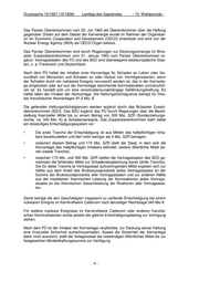Drucksache 15/1907 (15/1808) Landtag des Saarlandes - 15. Wahlperiode - Das Pariser Übereinkommen vom 29. Juli 1960 als Übereinkommen über die Haftung gegenüber Dritten auf dem Gebiet der Kernenergie wurde im Rahmen der Organisati- on for Economic Cooperation and Development (OECD) entwickelt und wird von der Nuclear Energy Agency (NEA) als OECD-Organ betreut. Das Pariser Übereinkommen wird durch Regelungen zur Deckungsvorsorge im Brüs- seler Zusatzübereinkommen vom 31. Januar 1963 zum Pariser Übereinkommen er- gänzt. Vertragsstaaten des PÜ und des BZÜ sind überwiegend westeuropäische Staa- ten, u. a. Frankreich und Deutschland. Nach dem PÜ haftet der Inhaber einer Kernanlage für Schaden an Leben oder Ge- sundheit von Menschen und Schaden an oder Verlust von Vermögenswerten, wenn der Schaden durch ein nukleares Ereignis verursacht worden ist, das in der Kernanla- ge eingetreten oder auf aus der Kernanlage stammende Kernmaterialien zurückzufüh- ren ist. Es handelt sich um eine verschuldensunabhängige Gefährdungshaftung. Es haftet allein der Inhaber der Atomanlage. Die Haftungshöchstgrenze beträgt für Inha- ber französischer Atomanlagen 91,5 Mio. €. Die geltenden Haftungshöchstgrenzen werden ergänzt durch das Brüsseler Zusatz- übereinkommen (BZÜ). Das BZÜ ergänzt das PÜ durch Regelungen über die Bereit- stellung finanzieller Mittel bis zu einem Betrag von 300 Mio. SZR (Sonderziehungs- rechte, ca. 340 Mio. €) je Schadensereignis. Das Zusatzübereinkommen sieht dabei ein dreistufiges Entschädigungssystem vor: • Die erste Tranche der Entschädigung ist aus Mitteln des haftpflichtigen Inha- bers bereitzustellen und darf nicht weniger als 5 Mio. SZR betragen; • zwischen diesem Betrag und 175 Mio. SZR stellt der Staat, in dem sich die Kernanlage des haftpflichtigen Inhabers befindet, weitere öffentliche Mittel be- reit (zweite Tranche); • zwischen 175 Mio. und 300 Mio. SZR stellen die Vertragsstaaten des BZÜ ge- meinsam die fehlenden Mittel zur Schadensbegleichung bereit (dritte Tranche). Die für diese Tranche je Vertragsstaat aufzubringenden Mittel ergeben sich zur Hälfte aus dem Anteil des Bruttosozialprodukts jedes Vertragsstaates an der Summe der Bruttosozialprodukte aller Vertragsstaaten und zur anderen Hälfte aus der installierten thermischen Leistung der Kernreaktoren jedes Vertrags- staates an der thermischen Gesamtleistung der Reaktoren aller Vertragsstaa- ten. Damit beträgt die den Geschädigten insgesamt zu zahlende Entschädigung bei einem nuklearen Ereignis im Kernkraftwerk Cattenom nach derzeitiger Rechtslage 340 Mio €. Für weitere nukleare Ereignisse im Kernkraftwerk Cattenom oder anderen französi- schen Kernkraftwerken würde jeweils der gleiche Entschädigungsbetrag zur Verfügung stehen. Nach dem PÜ ist der Inhaber der Kernanlage verpflichtet, zur Deckung seiner Haftung eine finanzielle Sicherheit aufrechtzuerhalten. Soweit die Sicherheit der Kernanlage dafür nicht ausreicht, stellt der Anlagenstaat die notwendigen öffentlichen Mittel bis zur festgesetzten Mindesthaftungssumme zur Verfügung -4-
