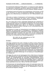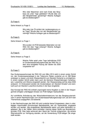 Drucksache 15/1439 (15/921) Landtag des Saarlandes - 15. Wahlperiode - In den Jahren 1983 bis 1985 wurden bei der Saarbergwerke AG folgende Mengen PCB-haltiger Hydrauliköle entsorgt: 1983: 8 Tonnen, 1984: 75 Tonnen, 1985: 77 Tonnen. Die Entsorgung der PCB-haltigen Öle im Saarbergbau erfolgte unter anderem über die Firmen Tredy, Lyon, HIM und Bayer als zugelassene Abfallbeseitigungsanlagen. Im Rahmen einer Arbeitsgruppe des Landesamtes für Umwelt- und Arbeitsschutz und des Bergamtes wurden in den Jahren 2010 und 2011 die Auswirkungen der Gruben- wassereinleitungen durch die RAG AG speziell vor dem Hintergrund erhöhter PCB- Gehalte in der Saar untersucht. Bezogen auf die aktuellen Einleitungen der Wasserhaltungen der RAG AG ergab sich an der gemessenen Gesamtfracht von PCB in der Saar ein Anteil von ca. ein Prozent für bergbaulich induzierte Einleitungen. Welche Auflagen wurden der RAG AG während des Bergbaus im Umgang mit Maschinen und Ölen und deren Entsorgung gemacht? Zu Frage 2: Siehe Antwort zu Frage 1. Welche Auflagen wurden der RAG AG bei Been- dung des Bergbaus im Umgang mit Maschinen und Ölen und deren Entsorgung gemacht? Zu Frage 3: Siehe Antwort zu Frage 1. Beim Aufsuchen, Gewinnen und Aufbereiten der Steinkohle fielen betriebsbedingte Abfälle an, deren geordnete und umweltverträgliche Entsorgung über oder unter Tage sicherzustellen war. Hierunter fielen unter anderem tropffrei von Betriebsstoffen ent- leerte Betriebsmittel. Die Entsorgung bergbaulicher Abfälle über oder unter Tage unterliegt den Vorschriften des Bundesberggesetzes und wurde im Betriebsplanverfahren geregelt. In den fünf Gruben Ensdorf, Warndt, Luisenthal, Göttelborn und Reden wurden von 1994 bis 2012 bergbauliche Abfälle in Grubenbauen in unterschiedlichen Teufen ent- sorgt. Dabei handelte es sich z.B. um defekte Bandgurte, Schläuche, Kunststoff oder Schrott. Diese Materialien hätten auch bei einem untertägigen Rückzug unter Tage verbleiben können. Die Gesamtmengen sind nicht mehr feststellbar. Die entsprechen- den Grubenbaue wurden endgültig abgedämmt und im amtlichen Grubenbild kenntlich gemacht. -4-