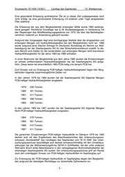 Drucksache 15/1439 (15/921) Landtag des Saarlandes - 15. Wahlperiode - Eine gesonderte Erfassung synthetischer Öle ist zu dieser Zeit zulässigerweise noch nicht erfolgt, da eine gemeinsame Entsorgung mit anderen unter Tage eingesetzten Ölen stattfand. Die Erfassung der aus dem Bergbaubetrieb entsorgten Altöle wurde 1983 weiterge- hend geregelt. Rechtliche Grundlage war § 55 Bundesberggesetz in Verbindung mit den Regelungen des Abfallbeseitigungsgesetzes von 1972, die über das Betriebsplan- verfahren materiell zur Anwendung gebracht wurden. Aufgrund des Vorgesagten liegt eine durchgängige Statistik über die eingesetzten und entsorgten Mengen von Hydraulikflüssigkeiten bei den Bergbehörden nicht vor. 1986 wurde aufgrund einer Kleinen Anfrage im Deutschen Bundestag ein Bericht zur Altöl- beseitigung bei der Saarbergwerke AG für das Wirtschaftsministerium erstellt. In die- sem Bericht sind Zahlen für die verwendeten und entsorgten Mengen nicht brennbarer Hydraulikflüssigkeiten für die Jahre 1983 bis 1985 enthalten. In einer Aktennotiz der Bergbehörde aus dem Jahre 1985 wurden die Einsatzmengen an schwer entflammbaren Hydraulikflüssigkeiten bei der Saarbergwerke AG aufge- führt. Diese waren bis einschließlich 1983 PCB-haltig und danach PCB-frei. Zum Einsatz und zur Entsorgung PCB-haltiger Hydraulikflüssigkeiten liegen den Berg- behörden folgende zusammengeführte Zahlen vor: In den Jahren 1979 bis 1983 wurden bei der Saarbergwerke AG folgende Mengen PCB-haltiger Hydraulikflüssigkeiten eingesetzt: 1979: 226 Tonnen, 1980: 321 Tonnen, 1981: 311 Tonnen, 1982: 358 Tonnen, 1983: 356 Tonnen. In den Jahren 1984 bis 1987 wurden bei der Saarbergwerke AG folgende Mengen Nicht-PCB-haltiger Hydraulikflüssigkeiten eingesetzt: 1984: 479 Tonnen, 1985: 561 Tonnen, 1986: 412 Tonnen, 1987: 411 Tonnen. Die genannten Einsatzmengen PCB-haltiger Hydrauliköle im Zeitraum 1979 bis 1983 decken sich mit den Ergebnissen des Abschlussberichtes des Untersuchungsaus- schusses „Sonderabfall“ des Landtages des Saarlandes vom 16.10.1984. Der Unter- suchungsausschuss beschäftigte sich damals schwerpunktmäßig mit den Umweltaus- wirkungen bei der Altölverwertungsfirma GEVA in Schiffweiler, bei der unter anderem Altöl beim Bruch eines Betonbeckens in den nahegelegenen Brönnchesthalweiher der ehemaligen Saarbergwerke AG auslief. Der Untersuchungsausschuss griff am Rande auch den untertägigen Einsatz von PCB-haltigen Hydraulikölen im Saarbergbau auf. Zur Entsorgung der PCB-haltigen Hydrauliköle im Saarbergbau liegen den Bergbehör- den aufgrund der damaligen Rechtslage nur lückenhafte Zahlenwerke vor. -3-