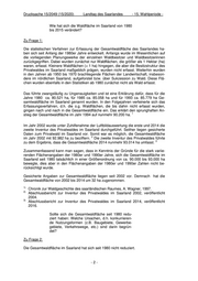 Drucksache 15/2049 (15/2020) Landtag des Saarlandes - 15. Wahlperiode - Wie hat sich die Waldfläche im Saarland von 1980 bis 2015 verändert? Zu Frage 1: Die statistischen Verfahren zur Erfassung der Gesamtwaldfläche des Saarlandes ha- ben sich seit Anfang der 1980er Jahre entwickelt. Anfangs wurde im Wesentlichen auf die vorliegenden Planungswerke der einzelnen Waldbesitzer und Waldbesitzerinnen zurückgegriffen. Dabei wurden zunächst nur Waldflächen, die größer als 1 Hektar (ha) waren, erfasst. Kleinere Waldflächen (< 1 ha) hingegen, die aber die Besitzstruktur des Privatwaldes im Saarland maßgeblich prägen, wurden nicht erfasst. Weiterhin wurden in den Jahren ab 1950 bis 1970 brachliegende Flächen der Landwirtschaft, insbeson- dere im nördlichen Saarland, aufgeforstet bzw. über Sukzession zu Wald. Diese Flä- chen wurden ebenfalls in den Statistiken ab 1980 zunächst nicht als Wald erfasst. Das führte zwangsläufig zu Ungenauigkeiten und ist eine Erklärung dafür, dass für die Jahre 1980 ca. 80.521 ha, für 1985 ca. 85.058 ha und für 1993 ca. 85.779 ha Ge- samtwaldfläche im Saarland genannt wurden. In den Folgejahren verfeinerte sich das Erfassungsverfahren, d.h. die o.g. Waldflächen, die bis dahin nicht erfasst wurden, gingen nach und nach in die Gesamtwaldfläche ein. Das erklärt den sprunghaften An- 1 stieg der Gesamtwaldfläche im Jahr 1994 auf nunmehr 90.200 ha. Im Jahr 2002 wurde unter Zuhilfenahme der Luftbildauswertung die erste und 2014 die zweite Inventur des Privatwaldes im Saarland durchgeführt. Seither liegen gesicherte Daten zum Privatwald im Saarland vor. Somit war es möglich, die Gesamtwaldfläche 2 im Jahr 2002 mit 92.982 ha zu beziffern. Die zweite Inventur des Privatwaldes führte 3 zu dem Ergebnis, dass die Gesamtwaldfläche 2014 nunmehr 93.014 ha umfasst. Zusammenfassend kann man sagen, dass in Kenntnis der Gründe für die stark variie- renden Flächenangaben der 1980er und 1990er Jahre, sich die Gesamtwaldfläche im Saarland seit 1980 tatsächlich in einer Größenordnung von ca. 90.000 bis 93.000 ha bewegte, dies aber in den Flächenangaben der 1980er und 1990er Zahlen nicht be- rücksichtigt wurde. Gesicherte Angaben zur Gesamtwaldfläche liegen seit 2002 vor. Demnach hat die Gesamtwaldfläche von 2002 bis 2014 um 32 ha zugenommen. 1) Chronik zur Waldgeschichte des saarländischen Raumes, A. Wagner, 1997. 2) Abschlussbericht zur Inventur des Privatwaldes im Saarland 2002, veröffentlicht 2004. 3) Abschlussbericht zur Inventur des Privatwaldes im Saarland 2014, veröffentlicht 2016. Sollte sich die Gesamtwaldfläche seit 1980 redu- ziert haben: Welche Ursachen, d.h. konkurrieren- de Nutzungsformen (z.B. Baugebiete, Gewerbe- gebiete, Verkehrswege, etc.) sind darin begrün- det? Zu Frage 2: Die Gesamtwaldfläche im Saarland hat sich seit 1980 nicht reduziert. -2-