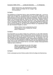 Drucksache 15/856 (15/791)           Landtag des Saarlandes          - 15. Wahlperiode - Welche Gründe gab es, die Vergangenheit der saarlän- dischen Parteien und Politiker bis zum heutigen Tage nicht aufzuarbeiten? Zu Frage 2: Die Aufarbeitung von Geschichte findet an vielen verschiedenen Stellen statt – von der Uni- versität über die Geschichts- und Heimatvereine bis hin zum privaten Engagement. In den letzten Jahren ist dabei eine beachtliche Anzahl an Publikationen auch über die Zeit des Nationalsozialismus im Raum des heutigen Saarlandes entstanden. Verwiesen sei etwa auf Autoren wie Klaus-Michael Mallmann, Gerhard Paul, Rainer Möhler, Elisabeth Thalhofer, Fabian Lemmes, Christoph Brass, Klaus Brill, Bernhard W. Planz, Hans-Peter Klausch oder auch an die Dauerausstellung „Zehn statt tausend Jahre“ des Regionalgeschichtlichen Mu- seums in Saarbrücken. Bei der Aufarbeitung der Vergangenheit sieht es die Landesregie- rung nicht als ihre Aufgabe an, den hierzu berufenen Akteuren der Zivilgesellschaft inhaltli- che oder thematische Vorgaben zu machen. Welchen Einfluss hat die Landesregierung auf die Themensetzung und die Erstellung der Echolot- Bände im Allgemeinen? Zu Frage 3: Die Echolot-Reihe ist aus eigener Initiative des Landesarchivs im Jahre 2005 entstanden. Damit wird das Landesarchiv seinem Auftrag gerecht, „an der Auswertung der von ihm auf- bewahrten Quellen sowie an der Erforschung und öffentlichen Vermittlung der Geschichte des Saarlandes und der Nachbarregionen“ (SArchG § 7, Abs. 5) mitzuwirken. Die in der Reihe erschienenen Bände entsprechen strengen wissenschaftlichen Maßstäben und zeich- nen sich durch eine hohe publizistische Qualität aus. Daher sah die Landesregierung bisher keinen Grund, auf die Themensetzung und die Erstellung der Echolot-Bände Einfluss aus- zuüben. Sie wird dies auch in Zukunft nicht tun, es sei denn, etwaige verfassungsfeindliche Tendenzen seien zu befürchten. Hätte die Landesregierung aus ihrer Sicht diesen Einfluss nutzen sollen, um die Rolle von saarländi- schen Nachkriegspolitikern in der NS-Zeit in dieser Publikation näher zu beleuchten? Zu Frage 4: Da die Landesregierung keinen Einfluss ausübte, fehlt die Grundlage einer Beantwortung. -3-