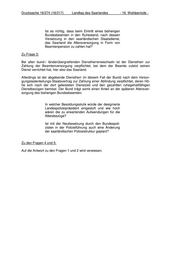 Drucksache 16/274 (16/217) Landtag des Saarlandes - 16. Wahlperiode - Ist es richtig, dass beim Eintritt eines bisherigen Bundesbeamten in den Ruhestand, nach dessen Versetzung in den saarländischen Staatsdienst, das Saarland die Altersversorgung in Form von Beamtenpension zu zahlen hat? Zu Frage 3: Bei allen bund-/ länderübergreifenden Dienstherrenwechseln ist der Dienstherr zur Zahlung der Beamtenversorgung verpflichtet, bei dem der Beamte zuletzt seinen Dienst verrichtet hat, hier also das Saarland. Allerdings ist der abgebende Dienstherr (in diesem Fall der Bund) nach dem Versor- gungslastenteilungs-Staatsvertrag zur Zahlung einer Abfindung verpflichtet, deren Hö- he sich nach der dort geleisteten Dienstzeit und den gezahlten ruhegehaltfähigen Dienstbezügen bemisst. Der Bund trägt somit einen Anteil an der späteren Altersver- sorgung des bisherigen Bundesbeamten. In welcher Besoldungsstufe würde der designierte Landespolizeipräsident eingestuft und wie hoch wären die zu erwartenden Aufwendungen für die Altersbezüge? Ist mit der Neubesetzung durch den Bundespoli- zisten in der Polizeiführung auch eine Änderung der saarländischen Polizeistruktur geplant? Zu den Fragen 4 und 5: Auf die Antwort zu den Fragen 1 und 2 wird verwiesen.