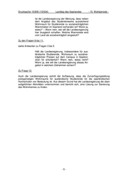 Drucksache 15/830 (15/524) Landtag des Saarlandes - 15. Wahlperiode - Wie ist der aktuelle Stand bezüglich einer Sanie- rung bzw. eines Neubaus von Wohnheim D? Wel- che Maßnahmen wurden seit der Sitzung des Ausschusses für Wissenschaft, Forschung und Technologie vom 21.11.2012 unternommen? Zu Frage 6: Für den aktuellen Stand betreffend Wohnheim D wird hier angeknüpft an die Darle- gungen vor dem Ausschuss für Wissenschaft, Forschung und Technologie des Land- tages des Saarlandes im 2. Halbjahr 2013. Es wird eine Lösung dahingehend diskutiert, dass das Eigentum an der Immobilie auf die WOGE übergehen könnte, die Bewirtschaftung aber durch das Studentenwerk im Saarland e.V. übernommen würde. Es werden momentan die Berechnungsfaktoren, die der Miete zugrunde liegen, analysiert. Aktuell befinden sich die Beteiligten, Univer- sität des Saarlandes, Studentenwerk im Saarland e.V., WOGE unter Federführung der Staatskanzlei in der Abstimmung und Überprüfung der Sanierungsfähigkeit sowie der Konditionen zur Bewirtschaftung des Wohnheimes D. Gibt es inzwischen bereits definitive Zusagen der Landesregierung für eine Ausfallbürgschaft sowie mögliche finanzielle Landeszuschüsse? Falls nein, welche Informationen bzw. Maßnahmen sind noch notwendig, um entsprechende Zusagen geben zu können und bis wann ist mit einer endgültigen Entscheidung zu rechnen? Zu Frage 7: Dem Studentenwerk wurde bereits in der gemeinsamen Besprechung am 13.01.2014 mitgeteilt, dass ein Landeszuschuss aufgrund der angespannten Haushaltslage des Saarlandes nicht möglich ist. Auf den Inhalt der 19. Sitzung des Ausschusses für Wis- senschaft, Forschung und Technologie vom 04.09.2013, in der die Sachlage ausführ- lich beraten wurde, wird verwiesen. Vorrangig wird aktuell über die favorisierte, sich wirtschaftlich tragende Lösung beraten. Welche zusätzlichen Maßnahmen hat die Landes- regierung bisher getroffen, um zum kommenden Wintersemester eine ausreichende Menge an stu- dentischem Wohnraum zu gewährleisten? Welche Maßnahmen wird die Landesregierung bis zum kommenden Wintersemester noch unter- nehmen, um eine ausreichende Menge an studen- tischem Wohnraum zu gewährleisten? Ist die Landesregierung der Auffassung, dass die bisher unternommenen Anstrengungen zur Bereit- stellung von studentischem Wohnraum ausrei- chen, um zum kommenden Wintersemester allen Studierenden im Saarland eine Wohnung zu sozi- alverträglichen Mieten (Warmmiete) anbieten zu können? Wenn ja, bitte begründen. -4-