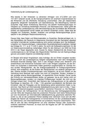 Ergebnisse für das Land Kosten durch Auftrag Art des Veröffentlichung Art der Vergabe Auftrages a) ja/ nein (Freihändige Vergabe als Ministerium/ Datum der (Gutachten, Auftragnehm b) Falls nein: Begründung Lfd. Begründung für Gesamtkosten Auswahlkriterien für Direktvergabe, Vergabe im Titel/ Thema nachg. Vergabe/ Studie, Anlayse, er/ c) Falls ja: Tag der Fertigstellung Nr. externe Vergabe ersparte Kosten Lösungsansätze je Haushaltsjahr (bisherige und noch Auftragnehmer Wettbewerb, Durchführung eines Behörde Entstehung sonstige Autor d) Falls ja: Tag der Veröffentlichung anfallende Kosten) vorgelagerten Beratungsaufträ e) Falls ja: genauer Ort u. Form (Print, Ausschreibungsverfahren, etc.) ge) Digital/Web) Folgen des Bebens vom 23. Staatskanzlei in 26./28.02.200 Gutachten NP, Lehr- und Das Gutachten diente der Keine. Nach dem Erschütterungsereignis 2008: 59.500 € 59.500 € NP zählt zu den führenden deutschen Berg- Freihändige Vergabe a) nein Februar 2008 Abstimmung mit 8 Forschungsge Vorbereitung und Umsetzung vom 23.02.2008 wurde wegen und Umweltrechtsexperten. b) Das Gutachten diente der MWAEV biet Berg- und von genehmigungsrechtlichen der Gefährdung von Leib und Vorbereitung von Entscheidungen der Umweltrecht Eingriffen der Landesregierung Leben der Bevölkerung im Landesregierung und der Bergbehörden. der RWTH und der Bergbehörden im Landkreis Saarlouis ein sofortiger Die RAG AG und der Landesverband Aachen Zusammenhang mit den Förderstopp im Flöz Schwalbach Saar der Bergbaubetroffenen e.V. schweren bergbaubedingten des Feldes Primsmulde verhängt. erhielten Kopien des Gutachtens. Erderschütterungen im Bereich Im September 2008 wurde der des Bergwerks Saar. Da solche Rahmenbetriebsplan für den Eingriffe von Dritten anfechtbar Abbau im Flöz Schwalbach der 17 sind und unter Umständen Felder Primsmulde und Dilsburg Schadenersatzansprüche in Teilen aufgehoben. Das auslösen können, war eine Gutachten von NP lieferte hierzu externe gutachterliche die erforderlichen rechtlichen Begleitung durch einen Begründungen. führenden deutschen Berg- und Umweltrechtsexperten zwingend erforderlich. Kohleforum Saar Staatskanzlei in 15.02.2008 Beratervertrag IFOK GmbH, Zweck des Beratervertrags war Keine. Die von der IFOK GmbH 2008: 194.673,54€ 220.673,65 € Die IFOK GmbH zählt zu den führenden Freihändige Vergabe a) nein Abstimmung mit Bensheim die Moderation und Mediation durchgeführte Moderation und 2010: 26.000,11 € deutschen Beratungsunternehmen im b) Die Ergebnisse der vertraulichen MWAEV des bergbaulichen Konflikts im Mediation trug maßgeblich dazu Bereich der Kommunikations-, Fach- und Sitzungen des Kohleforums Saar Saarrevier, der durch bei, bergbauliche Konflikte zu Dialogdienstleistungen. Schwerpunkte bilden wurden von der Landesregierung nicht gravierende Bergschäden und minimieren und den sozialen u.a. energie-, industrie- und veröffentlicht. Die im Kohleforum Saar seismische Ereignisse ausgelöst Frieden in den saarländischen klimaschutzpolitische Fragestellungen. vertretenen regionalen Stakeholder wurde. An den Sitzungen des Bergbaugemeinden wieder erhielten von der IFOK GmbH Kohleforums Saar nahmen alle herzustellen. Niederschriften der einzelnen Sitzungen. gesellschaftlich relevanten Gruppen im Saarland teil. Eine 18 externe Moderation und Mediation war zwingend erforderlich, weil diese Aufgaben von der Landesregierung aufgrund ihrer beihilfe- und genehmigungsrechtlichen Zuständigkeiten nicht wahrgenommen werden konnten. Verkauf der EVONIK Staatskanzleii n 16./17.12.201 Gutachten Noerr LLP, Das Gutachten diente der Keine. Das Gutachten von Noerr LLP 2011: 77.350 € 77.350,00 € Noerr LLP ist eine der führenden Freihändige Vergabe a) nein STEAG GmbH Abstimmung mit 0 München Klärung der stiftungs- und kam zum Ergebnis, dass der europäischen Wirtschaftskanzleien mit b) Das Gutachten wurde von der MWAEV satzungsrechtlichen Frage, ob Verkauf der 100%-Beteiligung der ausgewiesener Expertise für wirtschafts-, Landesregierung nicht veröffentlicht. Es der Verkauf der 100%- EVONIK Industries AG an der unternehmens- und stiftungsrechtliche bildete die Grundlage für das Votum des Beteiligung der EVONIK EVONIK STEAG GmbH der Fragestellungen. Ministerpräsidenten im Kuratorium der Industries AG an der EVONIK vorherigen Änderung der Satzung RAG-Stiftung. STEAG GmbH überhaupt der RAG-Stiftung und damit der c. ) möglich war und der vorherigen Zustimmung des Kuratoriums der d.) Zustimmung des Kuratoriums RAG-Stiftung bedurfte. Das e.) 19 der RAG-Stiftung bedurfte. Für Gutachten bildete die Grundlage die Entscheidungsfindung des für das Votum des Ministerpräsidenten als Ministerpräsidenten im Kuratorium geborenes Mitglied des der RAG-Stiftung. Kuratoriums der RAG-Stiftung war ein vorlaufendes externes Rechtsgutachten zwingend erforderlich. Verwaltungs- und Staatskanzlei 2007 Beratervertrag PwC- nicht konkret bezifferbar Handlungsempfehlung und 2007: 71.757 € 71.757 € a) nein Kontrollsystem für Pricewaterhou Umsetzungsberatung für das b) innerorganisatorische Maßnahmen europaische Fördermittel seCoopers Verwaltungs- und Kontrollsystem c.) 20 AG für europäische Fördermittel für d.) den Zeitraum 2007-2013 e.) Europarechtskonforme Staatskanzlei 18.06.2007 Beratervertrag PwC- nicht konkret bezifferbar Europarechtskonforme 2007: 60.273,50€ 346.284,05 € a) nein Verwaltungsprozessmodellie Pricewaterhou Verwaltungsprozessmodellierung 2008: 286.010,55€ b) innerorganisatorische Maßnahmen rung / Aufnahme mit Hilfe seCoopers und Optimierung der Verwaltungs- c.) 21 von Aris / Optimierung der AG und Kontrollprozesse d.) Verwaltungs- und e.) Kontrollprozesse Untersuchungen hinsichtlich 05.04.2011 Gutachten Ernst & Young externer Sachverstand nicht konkret bezifferbar Prozessoptimierung 2011: 96.390 € 96.390 € Der Auftragnehmer weist besondere Freihändige Vergabe a) nein des Operationellen Staatskanzlei in Wirtschaftsprü erforderlich R