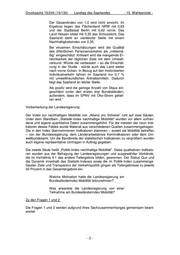 Drucksache 15/244 (15/134) Landtag des Saarlandes - 15. Wahlperiode - Die Sicherstellung einer bedarfsgerechten Mobilität ist eine Aufgabe der Daseinsvor- sorge. Insbesondere die Angebote und Maßnahmen im ÖPNV werden den Nutzern und somit einer breiten Öffentlichkeit über verschiedene Medien und Internetplattfor- men kommuniziert, um zum Umstieg vom Individualverkehr auf öffentliche Verkehrs- mittel anzuregen. Insofern ist es grundsätzlich Teil der Öffentlichkeitsarbeit der Lan- desregierung, Anfragen von Medien und Organisationen zur Mobilität zu beantworten. Vor allem aber ist die Landesregierung an einer Vergleichbarkeit mit anderen Ländern interessiert, da ein solcher Bundesländerindex Aspekte zu Tage fördern kann, die auch für das Saarland von Bedeutung sein könnten. Wenn ein solcher Index Verbes- serungsmöglichkeiten für das Saarland aufzeigt, wollen wir diese auch prüfen. Wie bewertet die Landesregierung die Ergebnisse des Bundesländerindex Mobilität 2012? Zu Frage 3: Mit dem Bundesländerindex Mobilität beschreitet die „Allianz pro Schiene“ Neuland. Den Anspruch einer umfassenden Betrachtung aller Aspekte von nachhaltiger Mobilität kann und will sie (so ihre eigene Aussage im Bericht) im ersten Jahr des Erscheinens nicht erheben. So beschränkt sie sich bei dem Politik-Index auf die oberste Ebene der politischen Ziele. Die vielschichtigen und oft bemerkenswerten Einzelmaßnahmen flie- ßen damit nur punktuell in die Porträts der Länder ein, um politische Glanzpunkte zu verdeutlichen. Derzeit akzentuiert der Index auch stärker die Lasten der Mobilität als den Nutzen. Es wurde versucht, die in der Wissenschaft genannten Kategorien „Wertschöpfung des Verkehrssektors“ sowie „Zeit- und Kostenersparnisse“ mit allen auf Bundesländerebe- ne zur Verfügung stehenden Einzelaspekten abzudecken. Dies sind die Indikatoren „Bruttowertschöpfung Verkehr und Nachrichtenübermittlung pro Erwerbstätigem“ sowie die Indikatoren „Entfernung nächste Bushaltestelle“, „Entfernung zur nächsten Bahn- haltestelle“ und „Erreichbarkeit täglicher Ziele mit dem Umweltverbund“. Auch hier sind die Korrekturmöglichkeiten wegen mangelnder Datenverfügbarkeit auf Länderebene noch begrenzt. Aus den Ergebnissen des Statistik-Indexes kann keine unmittelbare Verantwortung der Landespolitik abgeleitet werden. Die Ergebnisse des Politik-Indexes können dagegen von der Landespolitik beeinflusst werden. Dabei kann jedoch nicht beurteilt werden, inwieweit die Rückäußerungen des Landes im Fragebogen von dem Gutachter den Tatsachen entsprechend verstanden und ausgewertet wurden. Die nachrangige Platzierung des Saarlandes auf Platz 13 zeigt bei der Detailbetrach- tung dennoch gute Einzelbewertungen. So wird dem Saarland bescheinigt, dass es viel Potential habe, um sich künftig weiter vorne zu platzieren. Bei einer Verbesserung der Erreichbarkeit der täglichen Ziele mit dem Umweltverbund könne das Land hier weiter nach vorne rücken. Die Aussage im Länderindex, dass der Vergleich zu ande- ren Bundesländern zeige, dass die Landesregierung bei den konkreten politischen Weichenstellungen im Hinblick auf nachhaltige Mobilität Nachholbedarf habe, kann nicht nachvollzogen werden. Hier müsste eine detailliertere Betrachtung erfolgen, was anhand des veröffentlichten Berichtes nicht möglich ist. -3-