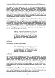 Drucksache 14/217 (14/180) Landtag des Saarlandes - 14. Wahlperiode - Die Vergabe der unter 1.) aufgeführten Post- und Kurierdienstleistungen erfolgte ent- sprechend den Vorgaben des Vergaberechts im Rahmen einer EU-weiten Ausschrei- bung. Im Leistungsverzeichnis wurde die Aufgabenstellung genau spezifiziert. Darüber hinaus hatten die Bieter Ausführungen zu ihren Unternehmen und Geschäftsabläufen vorzulegen. Diese Unterlagen bildeten für den Auftraggeber eine wichtige Grundlage bei der Beurteilung der Frage, ob der jeweilige Bieter zur Auftragserbringung im gefor- derten Umfang und in der geforderten Qualität in der Lage ist. Zudem waren u. a. Nachweise zur Sozialversicherungspflicht, Verpflichtung zur Zahlung von Steuern und Abgaben, Kopie der erteilten Postlizenzen vorzulegen. Der Postmindestlohn darf aus vergaberechtlicher Sicht nicht als Bewertungskriterium der Bewerber im Rahmen eines Vergabeverfahrens herangezogen werden. Der öffent- liche Auftraggeber darf zwar gem. § 97 Absatz 4 des Gesetzes gegen Wettbewerbsbe- schränkungen (GWB) zusätzliche auftragsbezogene, insbesondere soziale Anforde- rungen an den Auftraggeber stellen, wenn sie im sachlichen Zusammenhang mit dem Auftragsgegenstand stehen und sich aus der Leistungsbeschreibung ergeben. Andere oder weitergehende Anforderungen wie z. B. die Zugrundelegung eines Mindestlohnes kann der Auftraggeber nur mit Ermächtigung durch Bundes- oder Landesgesetz stel- len. Eine solche Ermächtigung liegt nicht vor. Stellt die Landesregierung sicher, dass auch nach dem Urteil des Bundesverwaltungsgerichts in Leipzig zum Post-Mindestlohn und dem Auslaufen des zugrunde liegenden Tarifvertrags Ende April ein Lohn von mindestens 9,80 Euro pro Stunde (West/Ost) gezahlt wird? Bitte Vorgehen begrün- den. Zu Frage 3: Auf die Antwort zu Frage 2 wird verwiesen. Plant die Landesregierung Änderungen des Ver- gaberechtes, um die Zustellung von Behördenpost im Bundesland durch Dienstleister, welche den bisherigen Mindestlohn von 9,80 Euro pro Stunde (West/Ost?) unterlaufen, zu unterbinden? Zu Frage 4: Der Entwurf eines neuen saarländischen Vergabe- und Tariftreuegesetztes liegt bereits vor. In diesem wurden insbesondere auch Tariftreueregelungen für den Bereich der Vergabe öffentlicher Aufträge über Bau-, Liefer- und Dienstleistungen im Sinne des § 98 des Gesetzes gegen Wettbewerbsbeschränkungen aufgenommen. Bei der Formu- lierung der Regelungen wurde die Rechtsprechung des EuGH in Verbindung mit der in Art. 49 EG geregelten Dienstleistungsfreiheit sowie die in Artikel 9 Absatz 3 GG veran- kerte Tarifautonomie berücksichtigt und eine Bindung an die nach dem Arbeitnehmer- entsendegesetz und dem Mindestarbeitsbedingungengesetz fixierten Löhne festge- schrieben. Die hierdurch gesicherte Berücksichtigung der grundgesetzlich verankerten Tarifauto- nomie ist für die saarländische Landesregierung von großer Bedeutung. Die Tarifauto- nomie stellt ein unantastbares Gut dar, das zu Recht einen zentralen Stellenwert bei der Aufrechterhaltung der Wirtschaftsordnung unseres Landes einnimmt. -2-