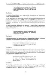Drucksache 15/1887 (15/1833) Landtag des Saarlandes - 15. Wahlperiode - Hat die Stabilisotopenanalyse jemals im Saarland Anwendung gefunden? Falls ja, bei welchen Pro- dukten und in welchem Umfang? Falls nein, wa- rum nicht? Zu Frage 1: Im Saarland besteht bislang keine Möglichkeit der Untersuchung von Lebensmitteln mittels Stabilisotopenanalyse. In den Jahren 2012 und 2013 wurden insgesamt 160 Hühnereier anlassbezogen mit- tels einer Stabilisotopenanalyse (IMRS - Isotopenverhältnis-Massenspektrometrie) auf ihre Herkunft untersucht. Die Untersuchung wurde als Fremdvergabe im Bayerischen Landesamt für Gesundheit und Lebensmittelsicherheit (LGL) Oberschleißheim durch- geführt. Im Jahr 2015 wurden im Rahmen von Monitoring 3 Proben Honig im Bieneninstitut Celle mittels Stabilisotopenanalyse auf ihre Herkunft untersucht. Alle Proben waren nicht zu beanstanden. Welche saarländische Behörde ist oder wäre theo- retisch für die Durchführung der Stabilisoto- penanalyse zuständig? Zu Frage 2: Für die Untersuchung von Lebensmitteln ist im Saarland das Landesamt für Verbrau- cherschutz und das Landesamt für Umwelt und Arbeitsschutz zuständig. Warum wird keine Fremdvergabe veranlasst, bis die saarländischen Behörden zur eigenständigen Prüfung in der Lage sind? Zu Frage 3: Sollte sich bei der risikoorientierten Probenahme ein Untersuchungsbedarf ergeben, werden solche einzelnen Proben im Rahmen der länderübergreifenden Zusammenar- beit an ein amtliches für diese spezielle Prüfmethode akkreditiertes Untersuchungsamt zur Untersuchung abgegeben (siehe Frage 1). Mittels welcher Methoden wird sichergestellt, dass die Herkunft von Obst und Gemüse, insbesondere bei Erdbeeren und Spargel, so wie angegeben tat- sächlich stimmt? Zu Frage 4: Frisches Obst und Gemüse werden nach der „Allgemeinen Verwaltungsnorm“ als auch nach den „Speziellen Verwaltungsnormen“(10) im Saarland regelmäßig überprüft. Ein- schlägig sind die EU-VO 1308/2013 und die EU-DVO 543/2011. -2-