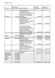 Anlage zu Frage 2 Fördersumme beantragte Zuwendung/ Kommune gem. Richtlinie € Zuwendungszweck Gesamtsumme Fördersumme ev. lutherische KiTa Energetische Sanierung; Dachneueindeckung, Erneuerung der Fenster, Trockenlegung Wände sowie neue Heizkörper Glücksburg 137.000,00 und Ventile 99.500,00 € 56.804,88 € ADS Kindergarten Ertüchtigung des Gebäudes; Reparatur Fassade, Neuverkleidung an Gesimskästen u. Giebeln, Renovierung Sanitärbereich 53.883,36 € 43.439,02 € KiTa Lyksborg Bornehave Ertüchtigung des Gebäudes einschl. energetische Sanierung; Sanierung Kinderbäder, Abdichtung feuchter Kellerwände, neue Fußböden, Beleuchtung 98.050,05 € 36.756,10 € "Kappel Börnehave" dänischer Kindergarten - energetische Kappeln 194.000,00 Sanierung 63.953,00 € 56.953,00 € DRK-KiTa 408.000,00 € 137.047,00 € Schleswig 430.000,00 ADS Kita Schleswig 39.000,00 € 31.500,00 € Bustrupdam Börnehave 131.377,20 € 59.074,47 € Waldorf-KiTa Ertüchtigung des Gebäudes (Fenster, Heizung, Fußboden, Außentreppe als Fluchtweg) 43.680,42 € 39.312,38 € ev. KiTa St. Paulus Ertüchtigung des Gebäudes: Fenster, Türen, Wandisolierung außen, neue Heizung 629.254,15 € 81.516,15 € ev. KiTa Arche Bad Bramstedt 328.000,00 Ersatzbau 1.896.206,00 € 328.000,00 € Bad Segeberg 355.000,00 Trappenkamp 156.000,00 Itzehoe 614.000,00 Lägerdorf 99.000,00 Wilster 134.000,00 19.207.000,00 25.304.834,93 € 8.846.257,36 €