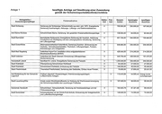 Anlage 2 nicht berücksichtigte Anträge auf Gewährung einer Zuwendung gemäß der Schwimmsportstättenförderrichtlinie Antragsteller Gemeinde Jevenstedt Amt Südtondern für die Gemeinde Neukirchen Stadt Neumünster Fördermaßnahme Freibad der Gemeinde Jevenstadt; Erneuerung Sanitäranlagen einschl. aller Grundleitungen, WC-/Umkleide-Trennwände und Stahlzargen, Spinde und Bänke, Fenster-/Türsanierung, Maler- und Lackierarbeiten, Sichtmauerwerk ausbessern von Rissen, Erneuerung Elektroninstallation einschl. Verteilung Gesamt- kosten beantr., Zuschuss Freibad der Gemeinde Neukirchen. Sanierungsarbeiten am Schwimmbecken des Freibades; Erneuerung Abdichtungsbahnen, Austausch Treppenanlage, Erneuerung Ein- und Abläufe und des Beckenkopfes Bad am Stadtwald. 50 m Freibadbecken; Sanierung der Duschen und WC-Anlagen, der Fliesen am Fußboden und den Wänden, Erneuerung der Deckenabhängung Erfde Amt Eiderkanal für die Gemeinde Osterrönfeld Amt Kirchspielslandgemeinde Eider für die Gemeinde Tellingstedt —_L Amt Kropp-Stapelholm für die Gemeinde Freibad; Erneuerung Kesselanlage, Installation BHKW zur Grundlastwärme- und Stromerzeugung, Verlegung eines Erdkabels zur Nutzung der erzeugten elektrischen Energie im Freibad ‘Freibad der Gemeinde Osterrönfeld. Sanierung Schwimmbecken und WC-Anlage, Solaranlage Wassererwärmung, Frequenzumwandler Pumpe, Außenbereich Babybecken Freibad Tellingstedt. Freibadsanierung (Beckenauskleidung, Beckenwasseraufbereitung) inkl. Wasserattraktionen. x 490.000,00 245.000,00 x 75.000,00 37.500,00 X 138.154,91 69.077,46 x 205.000,00 102.500,00 x 174.327,00 87.163,50 964.812,90 250.000,00 Nebengebäude, Hauptdach, Erneuerung Umkleiden, Fliesenarbeiten) _—_ te _ BEE Amt Kirchspielslandgemeinde Eider für die | Freibad der Gemeinde Hennstadt. Erneuerung der Anlagenverrohrung, Mess- und x 158.354,03 79.177,02 Gemeinde Hennstedt Regeltechnik I — [| Amt Heider Umland für die Gemeinde Maßnahmen zur technischen Sanierung des Freibades Hemmingstedt x 173.639,33 86.819,66 Hemmingstedt Gemeinde Lensahn Installation einer PV-Anlage im Freibad Lehnsahn x 63.078,34 31.539,17 | Landeshauptstadt Kiel Sommerbad Katzheide; Reparaturmaßnahmen im Bereich der Beckenfolien und Eu X 94.732,74 47.366,37 Technik zur Aufrechterhaltung der Betriebsfähigkeit und -sicherheit be — 1 — Gemeindewerke Trappenkamp Maßnahmen zur technischen Sanierung des Waldschwimmbades Trappenkamp x 34.135,75 17.067,88 I nn . . = z m = “oe = ® . pri —— nn | Amt Mittelangeln für die Gemeinde Sanierung und Modernisierung des Aktivbades in MittelangelnErneuerung Startblöcke, x | 218.500,00 109.250,00 Mittelangeln Sprungbrett und Wasserrutsche | Amt Oeversee für die Gemeinde Tarp Sanierung und Modernisierung des Freizeitbades in Tarp (Dachsanierung x 408.000,00 204.000,00