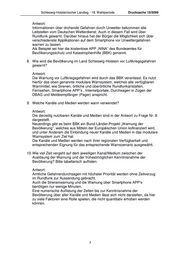 Schleswig-Holsteinischer Landtag - 18. Wahlperiode Drucksache 18/5099 Antwort: Informationen über drohende Gefahren durch Unwetter bekommen alle Leitstellen vom Deutschen Wetterdienst. Auch in diesem Fall wird über Rundfunk gewarnt. Darüber hinaus hat der Bürger die Möglichkeit sich über verschiedenste Applikationen auf dem Smartphone vor Unwettergefahren warnen zu lassen. Als Beispiel sei hier die kostenlose APP „NINA“ des Bundeamtes für Bevölkerungsschutz und Katastrophenhilfe (BBK) genannt. 8. Wie wird die Bevölkerung im Land Schleswig-Holstein vor Luftkriegsgefahren gewarnt? Antwort: Die Warnung vor Luftkriegsgefahren wird durch das BBK veranlasst. Es nutzt hierfür das oben genannte modulare Warnsystem, welches alle verfügbaren Warnmittel, wie Sirenen, örtliche und überörtliche Rundfunkanstalten, Fernsehen, Smartphone APP’s , Internetportale, Durchsagen in Zügen der DBAG und Meldeempfänger (Pager) anspricht. 9. Welche Kanäle und Medien werden wann verwendet? Antwort: Die derzeitig nutzbaren Kanäle und Medien sind in der Antwort zu Frage Nr. 8 dargestellt. Neuerdings gibt es beim BBK ein Bund-Länder-Projekt „Warnung der Bevölkerung“, welches aus Mitteln der Europäischen Union kofinanziert wird, und unter Anderem die Einbindung neuer Kanäle und Medien in das modulare Warnsystem zum Ziel hat. Die Kanäle und Medien werden nach ihrer regionalen Verfügbarkeit und entsprechenden Eignung für das entsprechende Warnszenario ausgewählt. 10. Wie viel Zeit vergeht auf dem jeweiligen Kanal/Medium zwischen der Auslösung der Warnung und der frühestmöglichen Kenntnisnahme der Bevölkerung? Bitte tabellarisch auflisten. Antwort: Amtliche Gefahrendurchsagen mit höchster Priorität werden ohne Zeitverzug im Rundfunk zur Aussendung gebracht. Auch die Sirenenwarnung und die Warnung über Smartphone APP’s benötigen nur wenige Minuten. Eine numerische Auflistung der Zeiten bis zur Kenntnisnahme der Bevölkerung über aller Kanäle und Medien lässt sich nicht darstellen, da hier zu viele Faktoren eine Rolle spielen, die nicht quantitativ erhoben werden können. 3