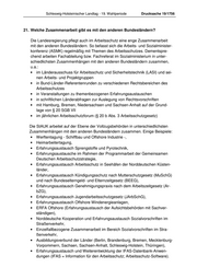 Schleswig-Holsteinischer Landtag - 19. Wahlperiode Drucksache 19/1756 21. Welche Zusammenarbeit gibt es mit den anderen Bundesländern? Die Landesregierung pflegt auch im Arbeitsschutz eine enge Zusammenarbeit mit den anderen Bundesländern. So befasst sich die Arbeits- und Sozialminister- konferenz (ASMK) regelmäßig mit Themen des Arbeitsschutzes. Dementspre- chend arbeiten Fachabteilung bzw. Fachreferat im Sozialministerium in unter- schiedlichsten Zusammenhängen mit den anderen Bundesländern zusammen, u.a.: • im Länderausschuss für Arbeitsschutz und Sicherheitstechnik (LASI) und sei- nen Arbeits- und Projektgruppen • in Bund-Länder-Referentenrunden zu verschiedenen Rechtsbereichen des Arbeitsschutzes • in Veranstaltungen zu themenbezogenen Erfahrungsaustauschen • in schriftlichen Länderabfragen zur Auslegung von Rechtsvorschriften • mit Hamburg, Bremen, Niedersachsen und Sachsen-Anhalt auf der Grund- lage von § 20 SGB VII • im jährlichen Arbeitsschutzforum (§ 20 b Abs. 3 Arbeitsschutzgesetz) Die StAUK arbeitet auf der Ebene der Vollzugsbehörden in unterschiedlichsten Zusammenhängen mit den anderen Bundesländern zusammen. Einige Beispiele: • Werftentagung - Schiffbau und Offshore Industrie -, • Heimarbeitertagung, • Erfahrungsaustausch Sprengstoffe und Pyrotechnik, • Erfahrungsaustausche im Rahmen der Programmarbeit der Gemeinsamen Deutschen Arbeitsschutzstrategie, • Erfahrungsaustausch Arbeitsschutz in Seehäfen der Norddeutschen Küsten- länder, • Erfahrungsaustausch Kündigungsschutz nach Mutterschutzgesetz (MuSchG) und nach Bundeselterngeld- und Elternzeitgesetz (BEEG), • Erfahrungsaustausch Genehmigungspraxis nach dem Arbeitszeitgesetz (Ar- bZG), • Erfahrungsaustausch Jugendarbeitsschutzgesetz (JArbSchG), • Erfahrungsaustausch Offshore Windenergieanlagen, • ERFA Offshore (Erfahrungsaustausch der Aufsichtsbehörden mit Sachver- ständigen), • Norddeutsche Kooperation und Erfahrungsaustausch Sozialvorschriften im Straßenverkehr, • Einzelfallbezogene Zusammenarbeit im Bereich Sozialvorschriften im Stra- ßenverkehr, • Ausbildungsverbund der Länder (Berlin, Brandenburg, Bremen, Mecklenburg- Vorpommern, Sachsen, Sachsen-Anhalt, Schleswig-Holstein, Thüringen), • Erfahrungsaustausch und Weiterentwicklung der IFAS-Datenbank-Anwen- dungen (IFAS = Information für den Arbeitsschutz; Arbeitsschutz-Software).