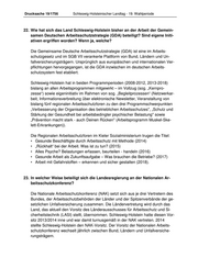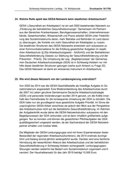 Schleswig-Holsteinischer Landtag - 19. Wahlperiode Drucksache 19/1756 24. Welche Rolle spielt das GESA-Netzwerk beim staatlichen Arbeitsschutz? GESA („Gesundheit am Arbeitsplatz“) ist ein seit 2002 bestehendes Netzwerk zur „Förderung der betrieblichen Gesundheitsvorsorge“. Gemeinsam mit Partnern aus den Bereichen Krankenkassen, Berufsgenossenschaften, Unternehmensver- bände, Gewerkschaften, Wissenschaft und Praxis arbeitet GESA unter Federfüh- rung des Sozialministeriums daran, mehr Betriebe und Behörden im Land davon zu überzeugen, die Vorteile von mehr Gesundheit am Arbeitsplatz zu nutzen. Die bewährten Strukturen des GESA-Netzwerks entwickeln sich sukzessive zu einer Kommunikationsebene für die Erfüllung gesetzlicher Aufgaben im staatli- chen Arbeitsschutz (§ 20a Arbeitsschutzgesetz - ArbSchG) und der Betrieblichen Gesundheitsförderung (Gesetz zur Stärkung der Gesundheitsförderung und der Prävention - PrävG). Die Umsetzung der sog. „Begleitprozesse“ der Gemeinsa- men Deutschen Arbeitsschutzstrategie (GDA) ist in Schleswig-Holstein nur mit- hilfe dieser bewährten Strukturen gelungen (siehe auch Antwort zu Frage 22). Das GESA-Netzwerk ist damit ein wirksames Instrument im Arbeitsschutz. 25. Wie wird dieses Netzwerk von der Landesregierung unterstützt? Von 2002 bis 2014 war die GESA-Geschäftsstelle als freiwillige Aufgabe im So- zialministerium angesiedelt. Eine Weiterentwicklung des Arbeitsschutzes durch die 2007 ins Leben gerufene Gemeinsame Deutsche Arbeitsschutzstrategie (GDA) und personelle Veränderungen wurden 2014 genutzt, um die Kräfte inner- halb des Fachreferates für die konsequente Umsetzung der GDA zu bündeln. Die GDA hatte nun als grundlegend neue gesetzliche Aufgabe Priorität. Im Sinne der ursprünglichen GESA-Arbeit verschloss sie jedoch den Blick aus der Perspektive des Arbeitsschutzes nicht auf die betriebliche Gesundheitsförderung. Im Rahmen der Aufgabenkritik wurde daher die GESA-Netzwerkstruktur sukzessive mit den Begleitprozessen der GDA verbunden und ist darin inhaltlich größtenteils aufge- gangen. Nur so konnten und können die gesetzlichen Pflichtaufgaben der GDA qualitätsgesichert umgesetzt werden, da der Sachverstand der GESA-Netzwerk- partner erhalten und nutzbar blieb. Die Mitglieder der GESA-Lenkungsgruppe sind mit ihrem Expertenwissen fester Bestandteil der regionalen Arbeitsschutzkonferenz, die 2014 erstmals durchge- führt und bislang einmal jährlich weitergeführt wurde. Darüber wird eine fachliche Vernetzung der wesentlichen Akteure des Arbeitsschutzes und der betrieblichen Gesundheitsförderung in Schleswig-Holstein sichergestellt. Lenkungsgruppen- Sitzungen werden weiterhin bei Bedarf vom Sozialministerium organisiert und fi- nanziert. Der Haushaltsansatz für das Jahr 2019 beträgt 10.000 Euro.