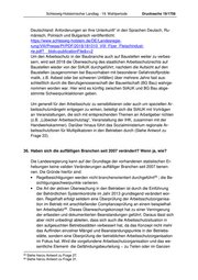 Schleswig-Holsteinischer Landtag - 19. Wahlperiode Drucksache 19/1756 Deutschland: Anforderungen an Ihre Unterkunft“ in den Sprachen Deutsch, Ru- mänisch, Polnisch und Bulgarisch veröffentlicht: https://www.schleswig-holstein.de/DE/Landesregie- rung/VIII/Presse/PI/PDF/2018/181010_VIII_Flyer_Fleischindust- rie.pdf?__blob=publicationFile&v=2 Um den Arbeitsschutz in der Baubranche auch auf Baustellen weiter zu verbes- sern, wird seit 2018 die Überwachung des staatlichen Arbeitsschutzrechts auf Baustellen wieder von der StAUK durchgeführt; nachdem die Aufsicht auf den Baustellen (ausgenommen bei Bauvorhaben mit besonderer Gefahrstoffproble- matik, z.B. Asbest oder bei schweren Unfällen) über mehrere Jahre fast aus- schließlich durch die Berufsgenossenschaft der Bauwirtschaft (BG Bau) wahrge- nommen worden war. Hier wird es künftig zwischen StAUK und BG Bau abge- stimmte Schwerpunktaktionen geben. Um generell für den Arbeitsschutz zu sensibilisieren oder auch um speziellen Ar- beitsschutzmängeln entgegen zu wirken, beteiligt sich die StAUK mit Vorträgen an Veranstaltungen, die sich mit entsprechenden Themen an Arbeitgeber richten (z.B. „Lübecker Arbeitsschutztag“, Veranstaltung der IHK, zusammen mit der Handwerkskammer). Darüber hinaus führt das Sozialministerium regionale Ar- beitsschutzforen für Multiplikatoren in den Betrieben durch (Siehe Antwort zu Frage 22). 36. Haben sich die auffälligen Branchen seit 2007 verändert? Wenn ja, wie? Die Landesregierung kann auf der Grundlage der vorhandenen statistischen Er- hebungen keine validen Veränderungen auffälliger Branchen seit 2007 benen- nen. Die Gründe hierfür sind: • Regelbesichtigungen werden nicht branchenorientiert durchgeführt ; die Be- 25 sichtigungsschwerpunkte variieren. • Die Art der aktiven Überwachung in den Betrieben ist durch die Einführung der Behördlichen Systemkontrolle im Jahr 2013 grundlegend verändert wor- den. Regelhaft erfolgt seitdem eine Überprüfung der Arbeitsschutzorganisa- tion im Betrieb mit anschließender Complianceprüfung an einem beispielhaf- 26 ten Arbeitsplatz . Dieses Überwachungskonzept hat zu einer Verringerung der erfassten und dokumentierten Beanstandungen geführt. Daraus lässt sich aber nicht unbedingt ableiten, dass sich auch die Arbeitsschutzsituation in den aufgesuchten Betriebsstätten verbessert hat, da das Konzept nicht mehr das Auffinden einzelner Mängel und Beanstandungspunkte in der Betriebs- stätte, sondern eine Überprüfung der betrieblichen Arbeitsschutzorganisation im Fokus hat. Wird die vorgefundene Arbeitsschutzorganisation und das we- sentliche Element- die Gefährdungsbeurteilung − zu Teilen oder im Ganzen 25 Siehe hierzu Antwort zu Frage 27. 26 Siehe hierzu Antwort zu Frage 31.
